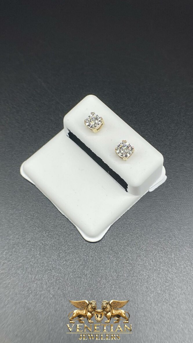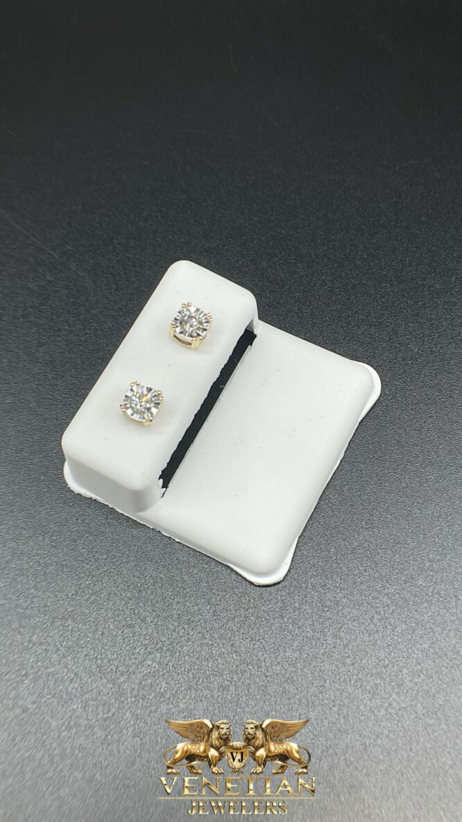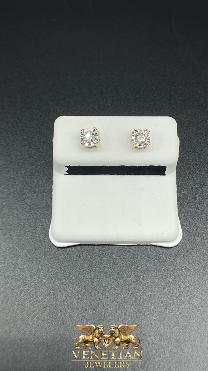 10Kt Yellow Gold Screwback Square Shaped Earings with 0.25 CTTW Diamonds