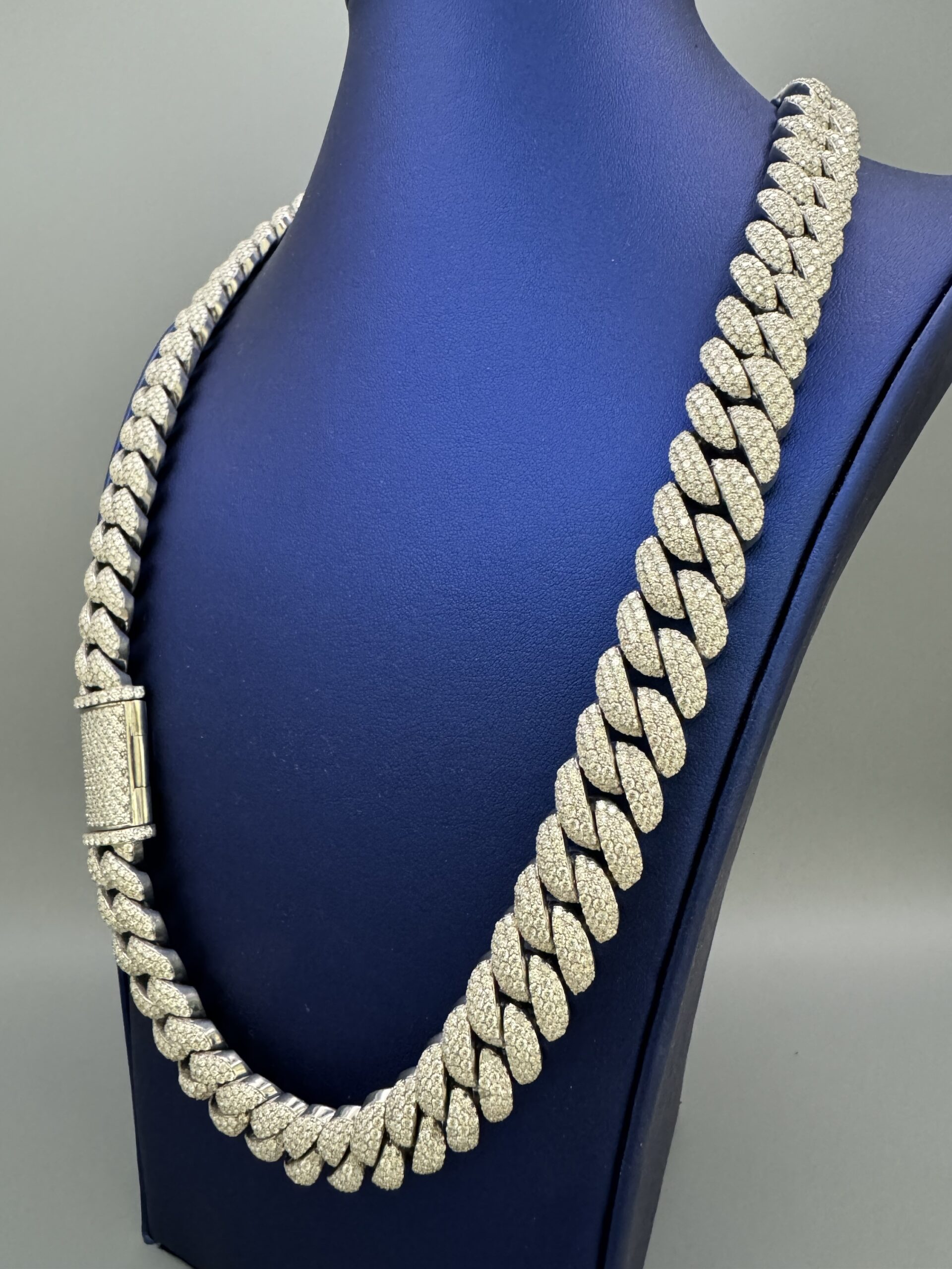Sterling Silver 16MM 50.00CT Moissanite Cuban Necklace 22″ Approx Weight 276.6 Gram Rounded DomeStyle VVS Clarity D Color Rhodium White Gold Finish All Honeycomb Set