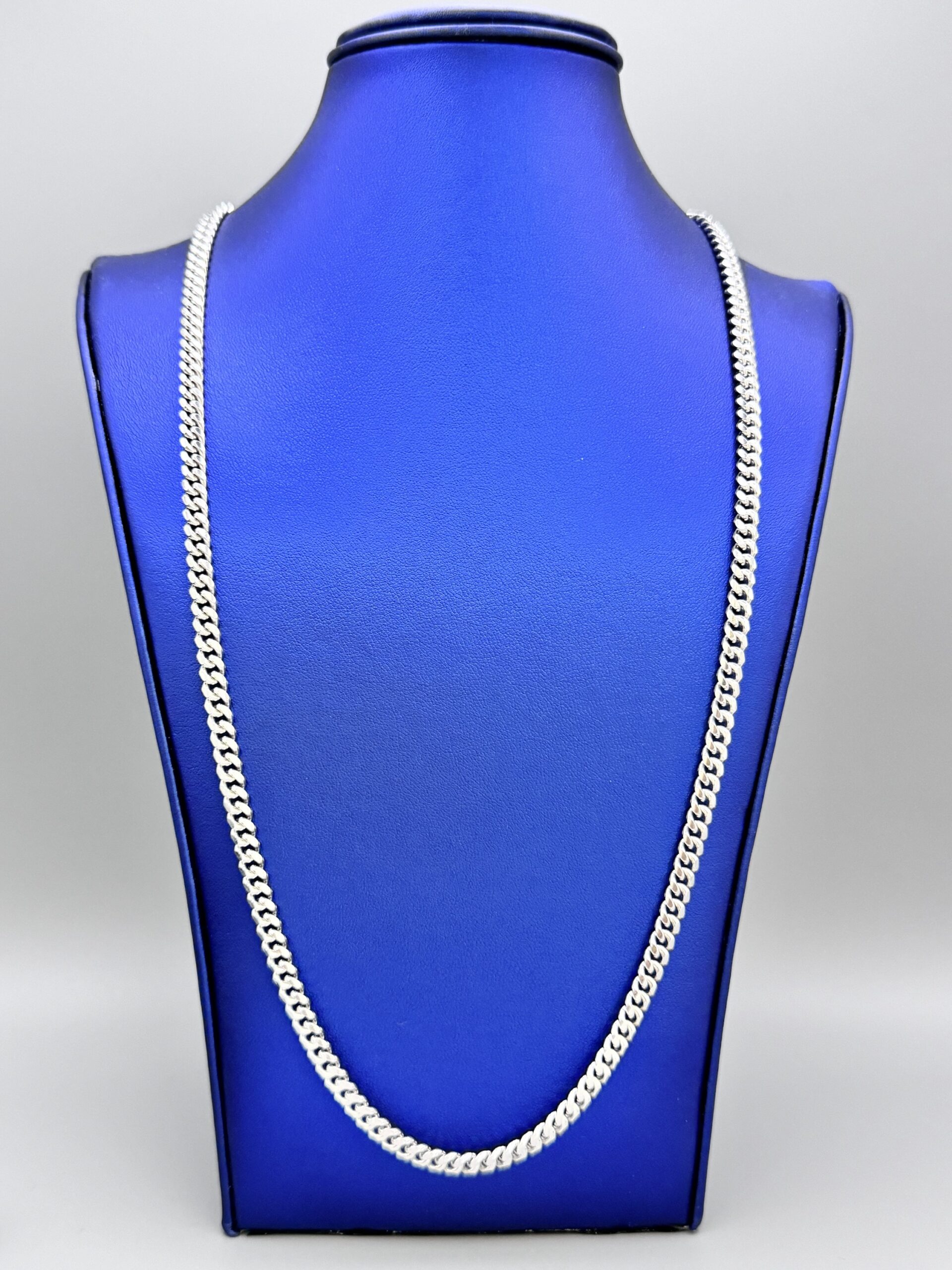 Elevate your style with this exclusive 24″ Sterling Silver Miami Cuban Necklace. Featuring a rhodium white gold finish, it is anti-tarnish and weighs approx. 38.2 grams for lasting elegance.