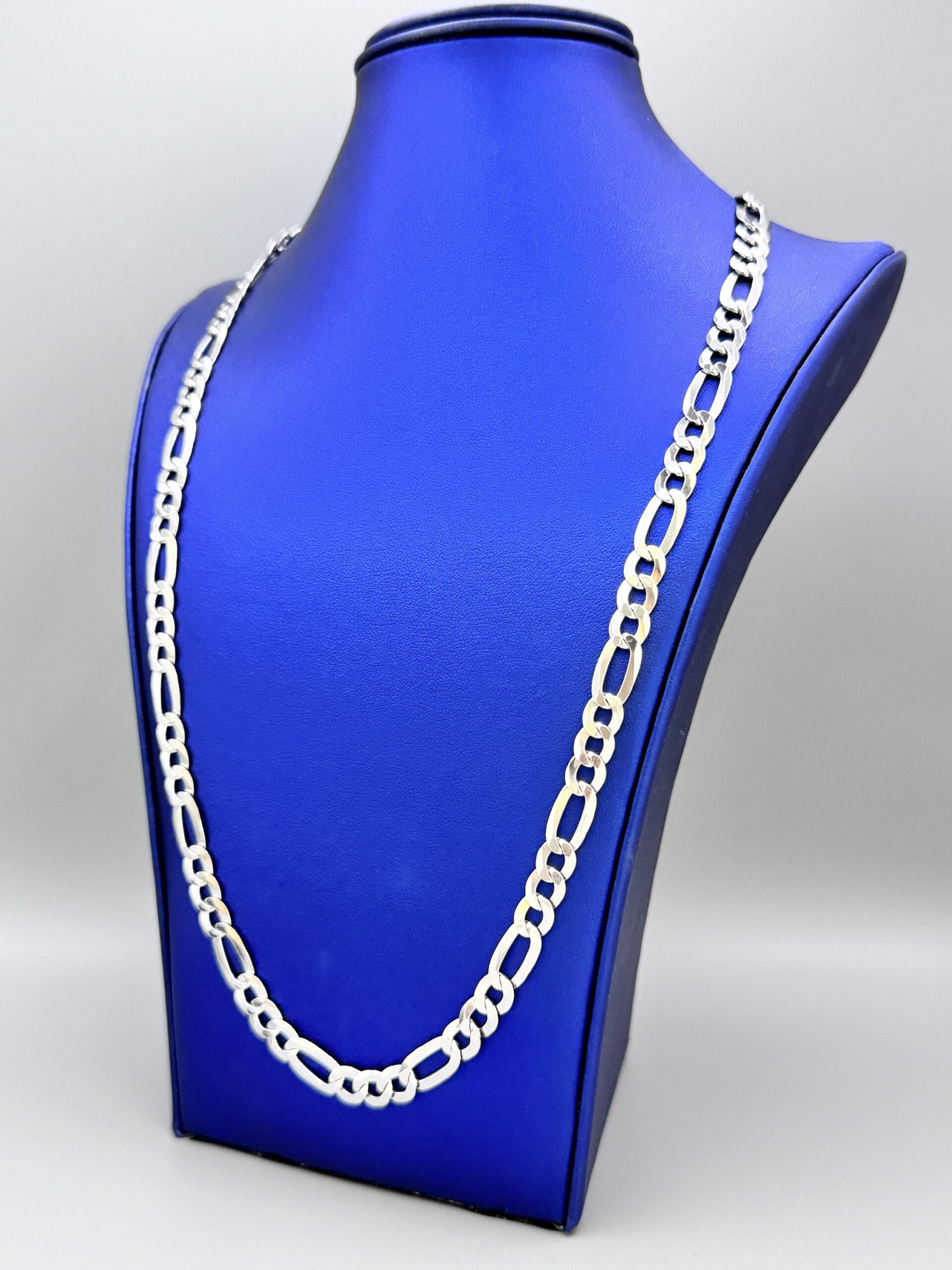 Sterling Silver Italian 7MM FigaroLink Necklace 22″ Rodium Whitegold Finish Anti Tarnish Approx Weight 27.9 Gram