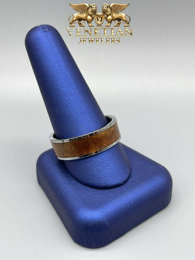Tungsten Carbide Mens Wedding Band With Wood In A Middle 8MM Available In “10/ “11 “12 / “13
