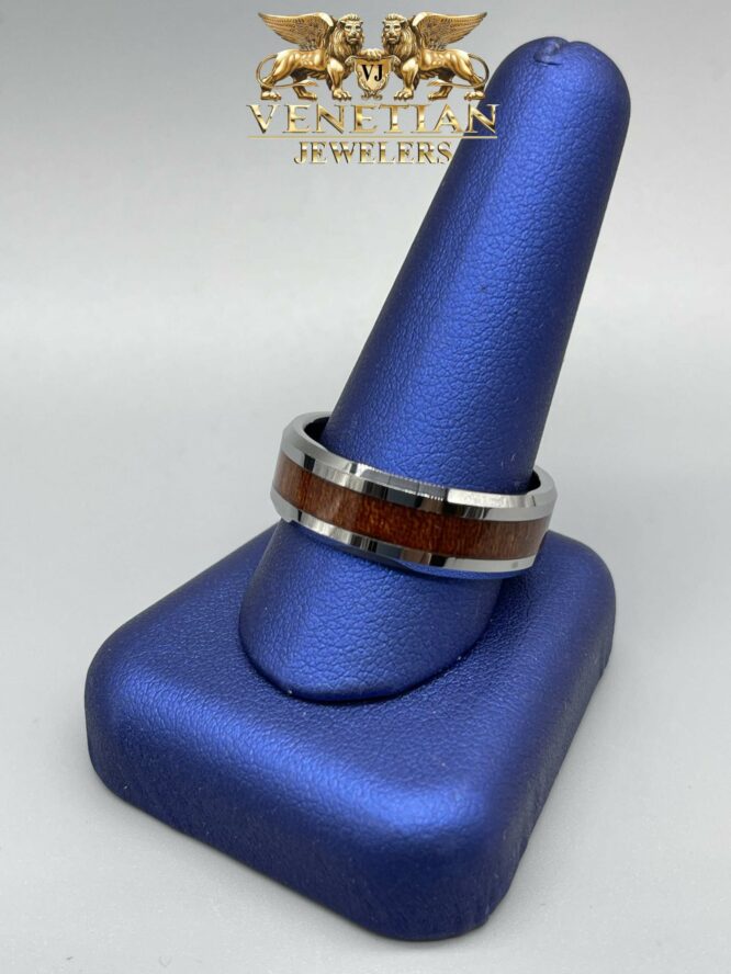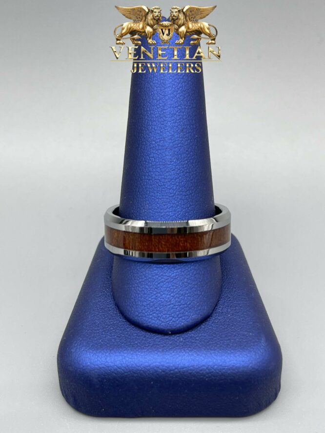 Tungsten Carbide Mens Wedding Band With Wood Design In A Middle Available In Size “10 / “11 /”12 /”13