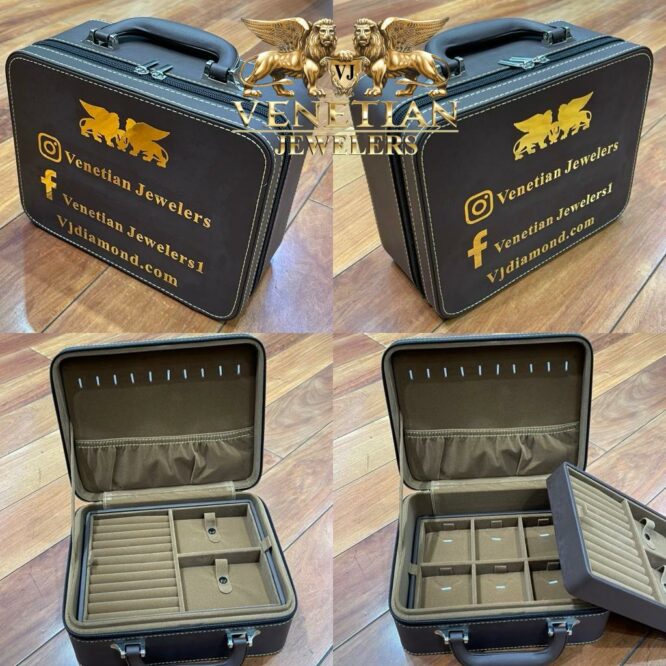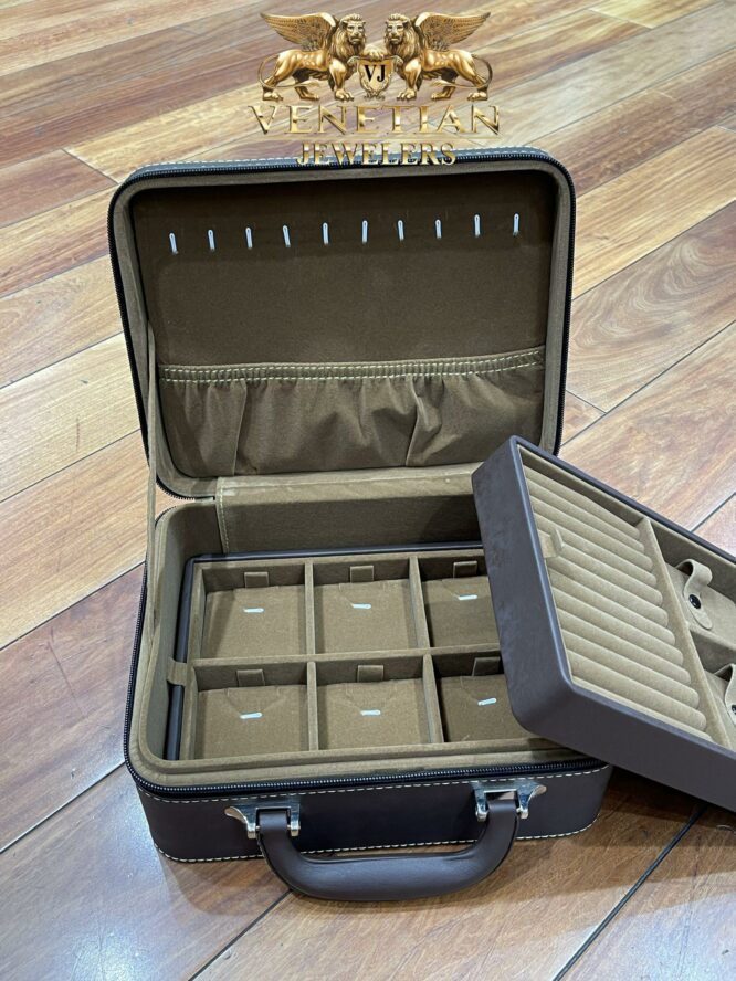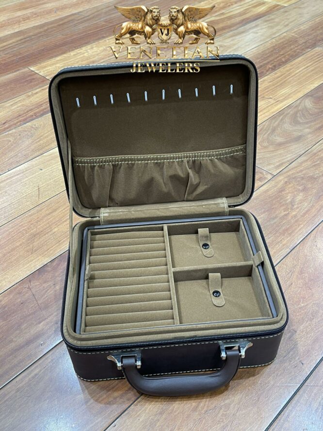 This Venetian World Travelers Jewelry Case is made of high-quality leather. This piece is thoughtfully crafted to be the perfect jewelry organizer at home or away.