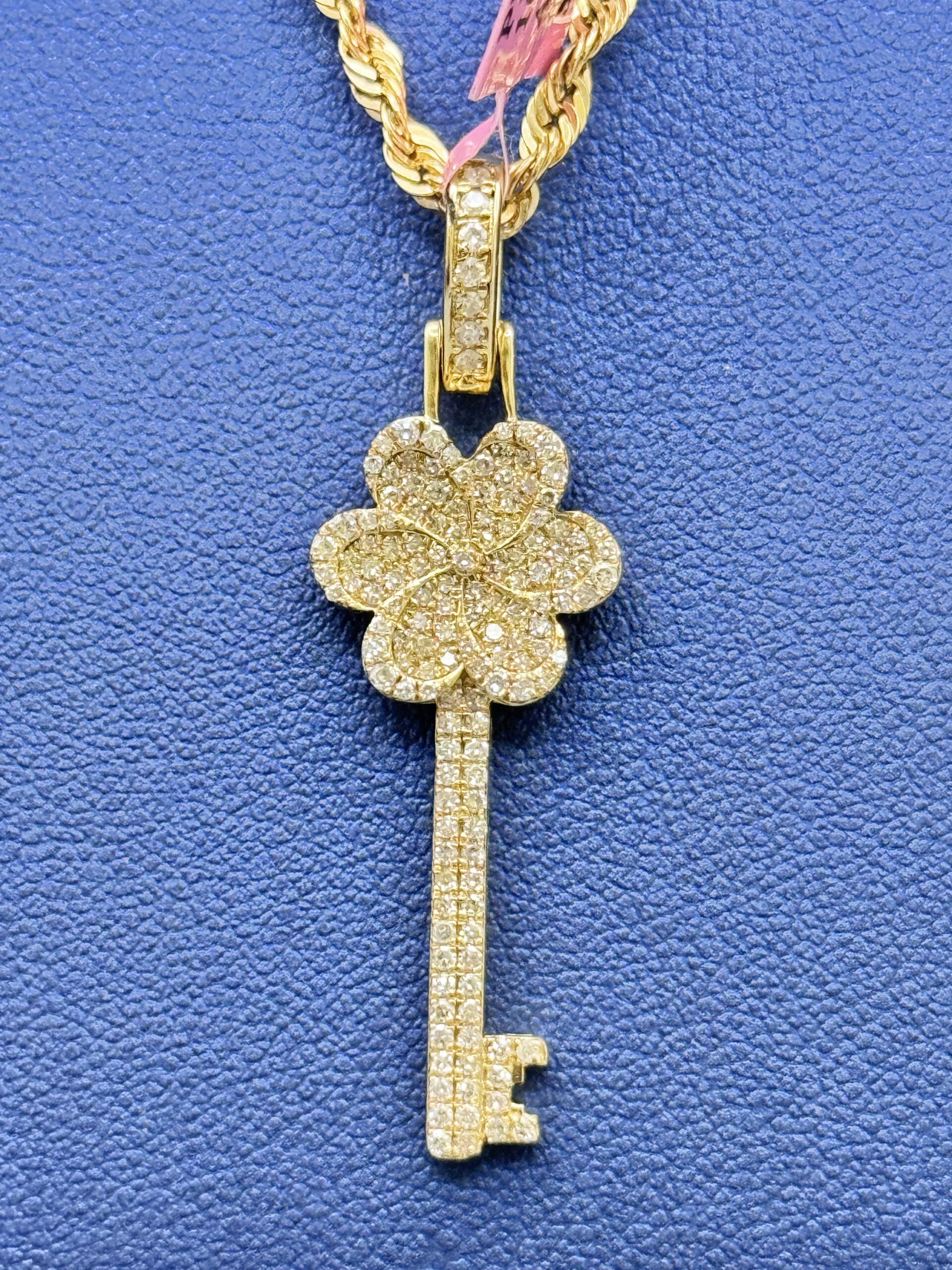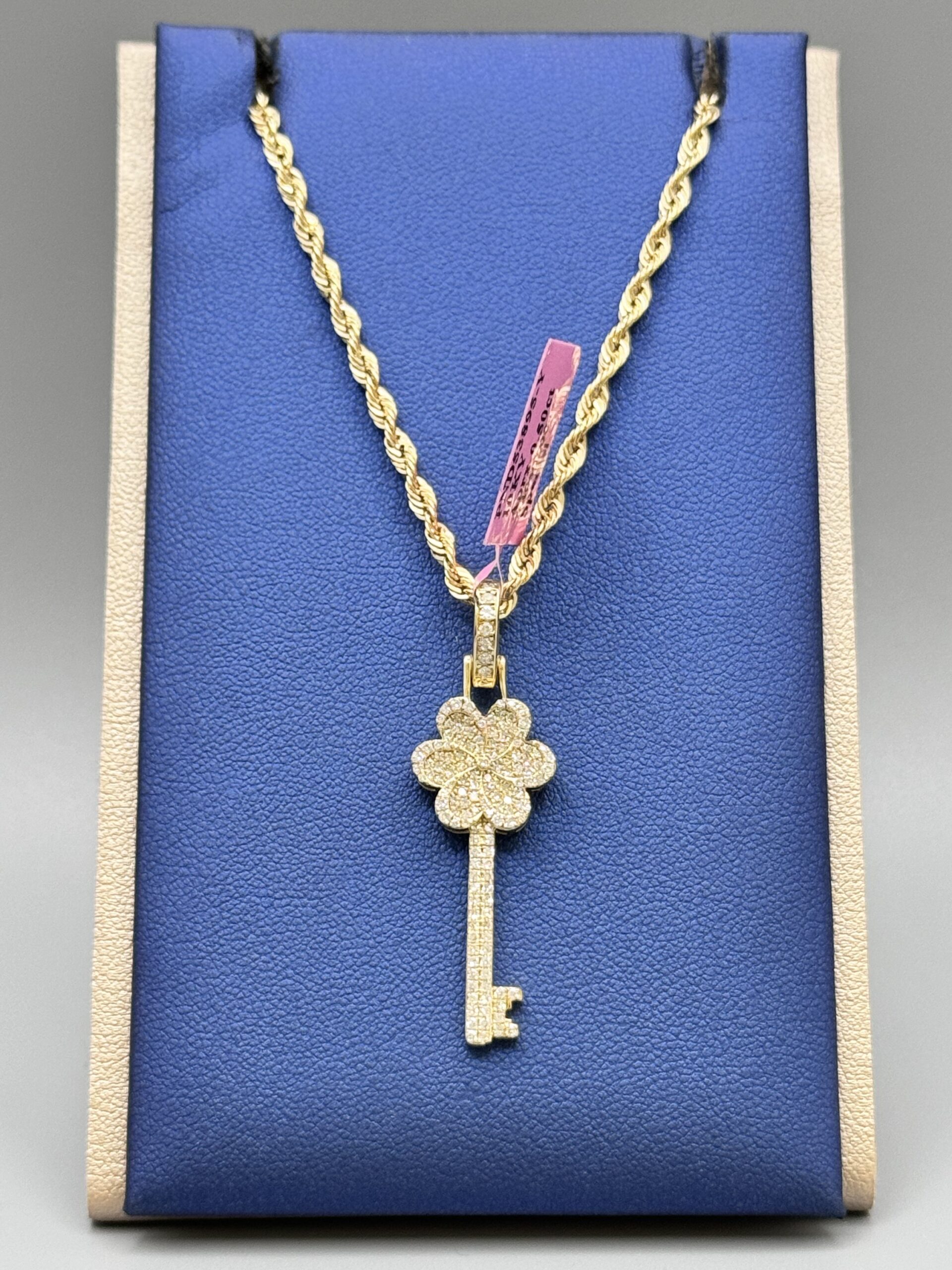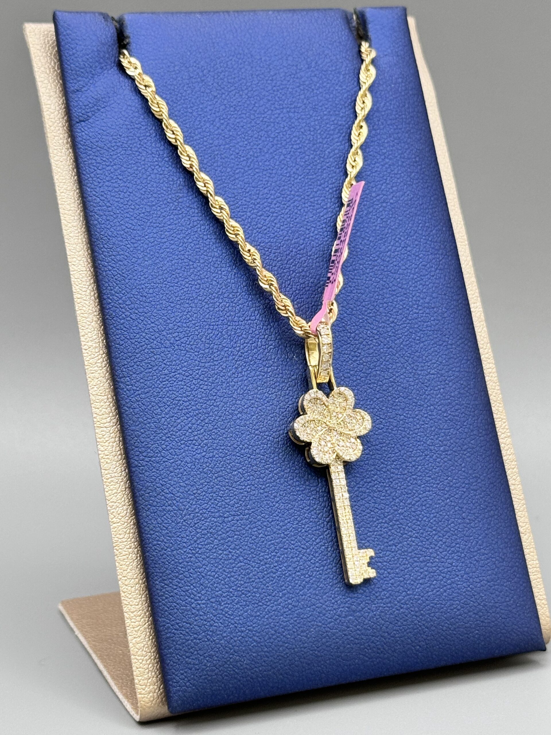 10KT Gold 0.5CT Diamond Key Pendant ComboSet Comes With 10KT Gold 2.5MM DiaCut Rope 18″ Necklace Approx Gold Pendant 3.1 Gram Pendant 1.75″ Tall 0.50″ Wide Approx Gold Weight 2.8 Gram