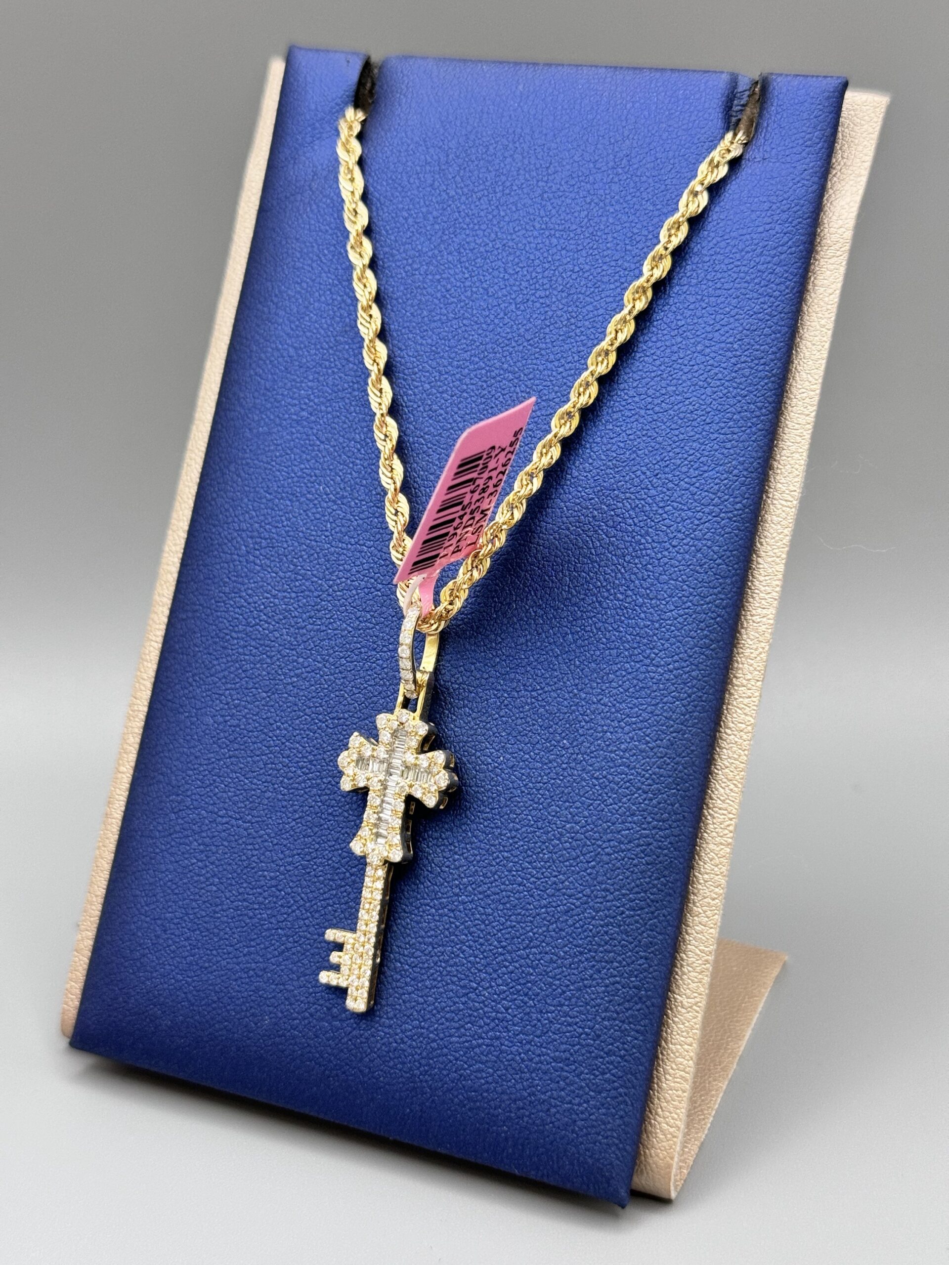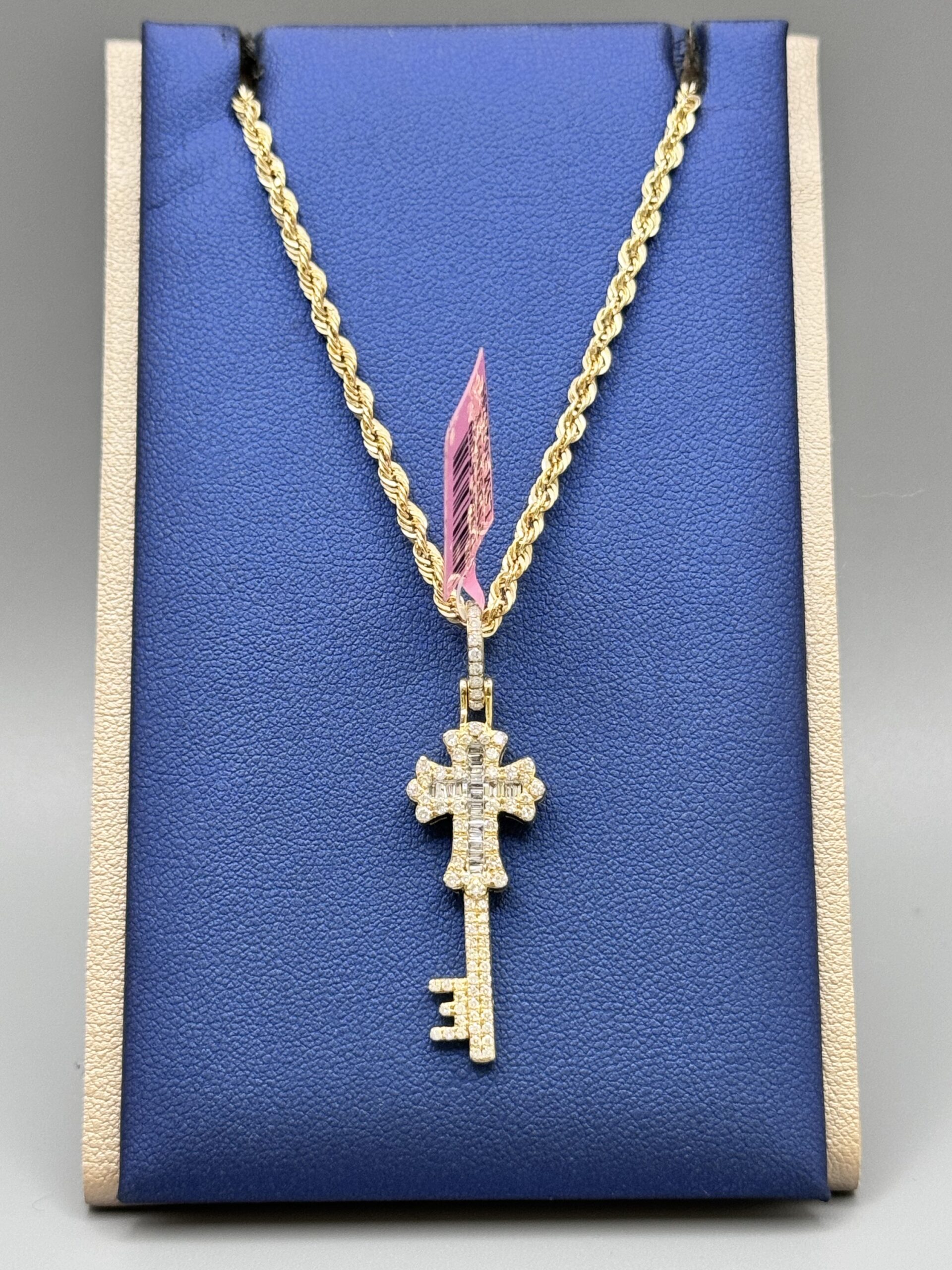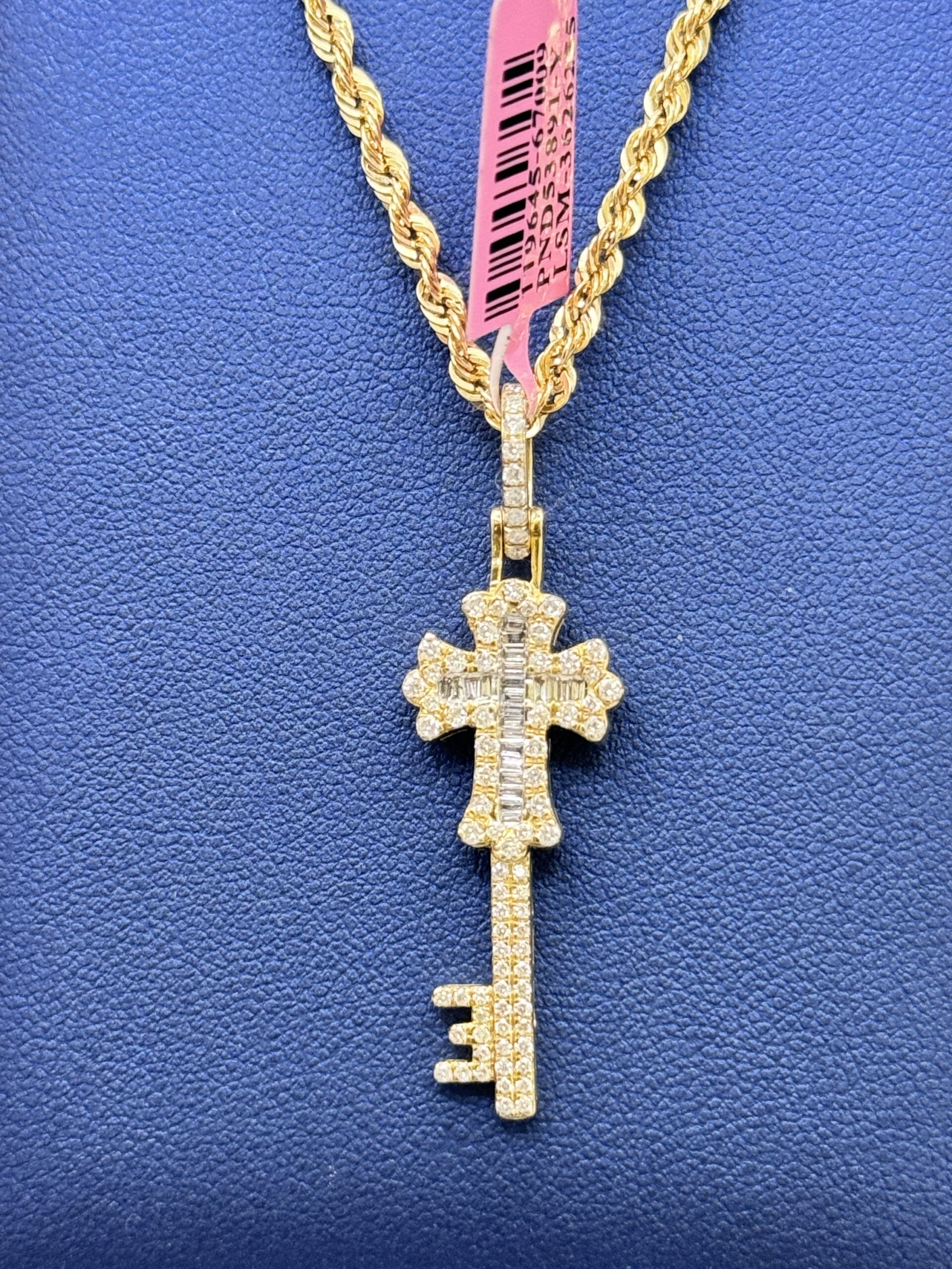 10KT Gold 0.65CT Diamond Cross Key Pendant ComboSet Comes With 10KT Gold 2.5MM DiaCut Rope 18″ Necklace Approx Gold Pendant 3.1 Gram Pendant 1.75″ Tall 0.50″ Wide Approx Gold Weight 2.8 Gram