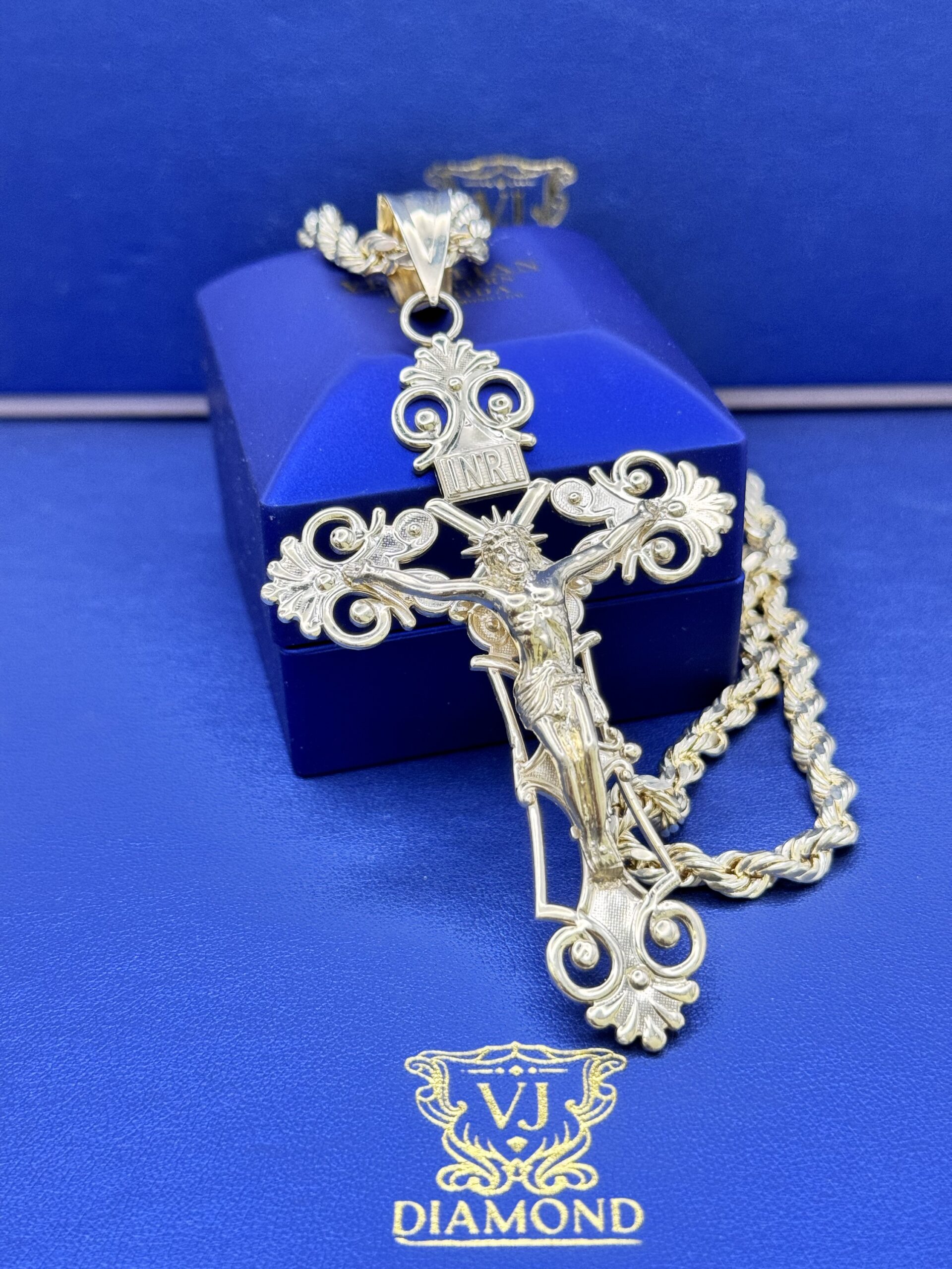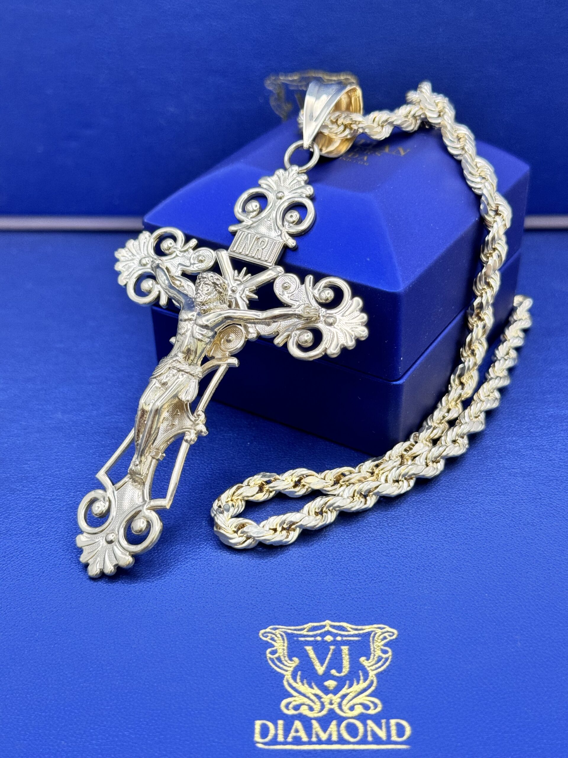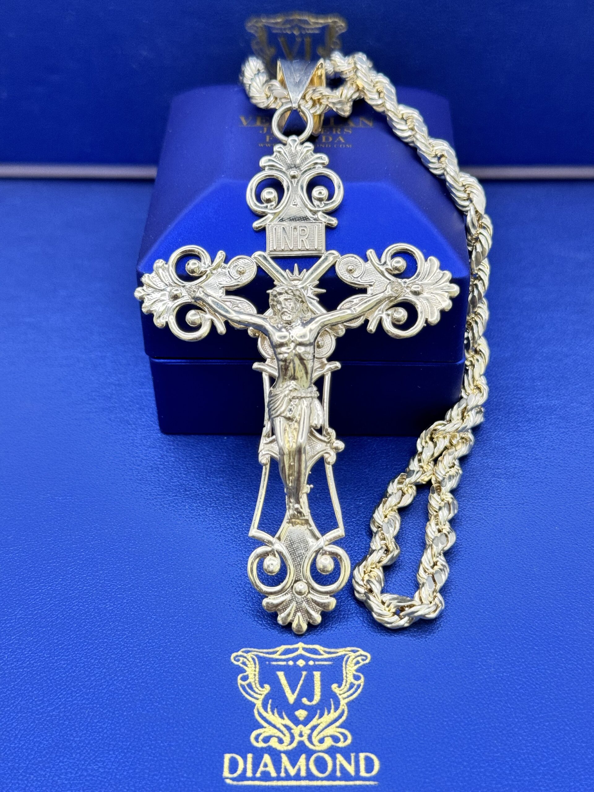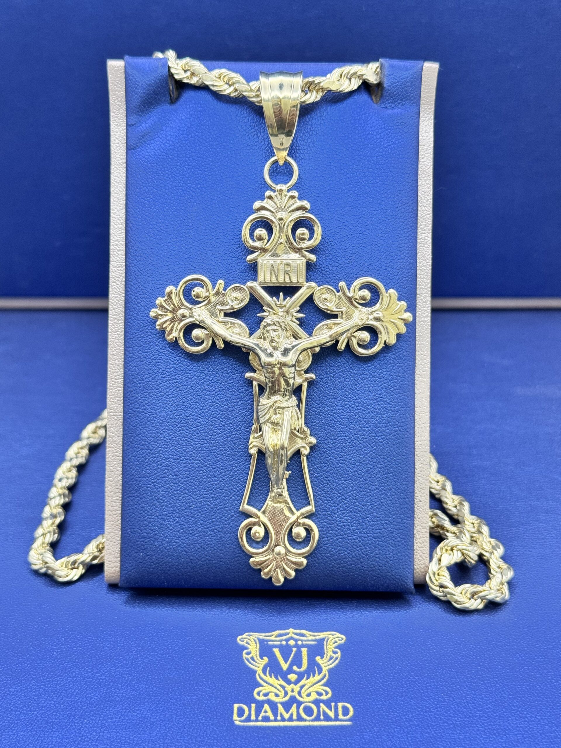 10KT Gold Cross Pendant ComboSet Comes With 10Kt 24″ Rope Necklace 6MM 12.4 Gram Pendant 4.25″ tall By 2.25″ Wide Approx Gold Weight 22.6 Gram