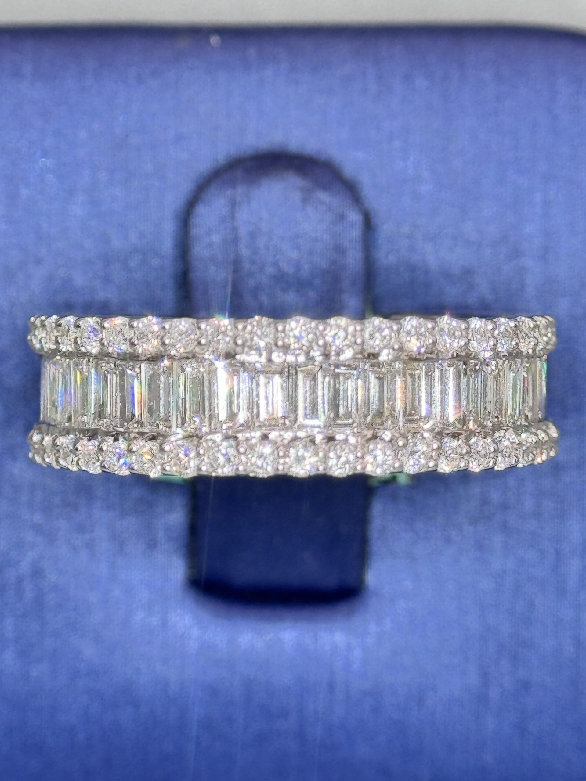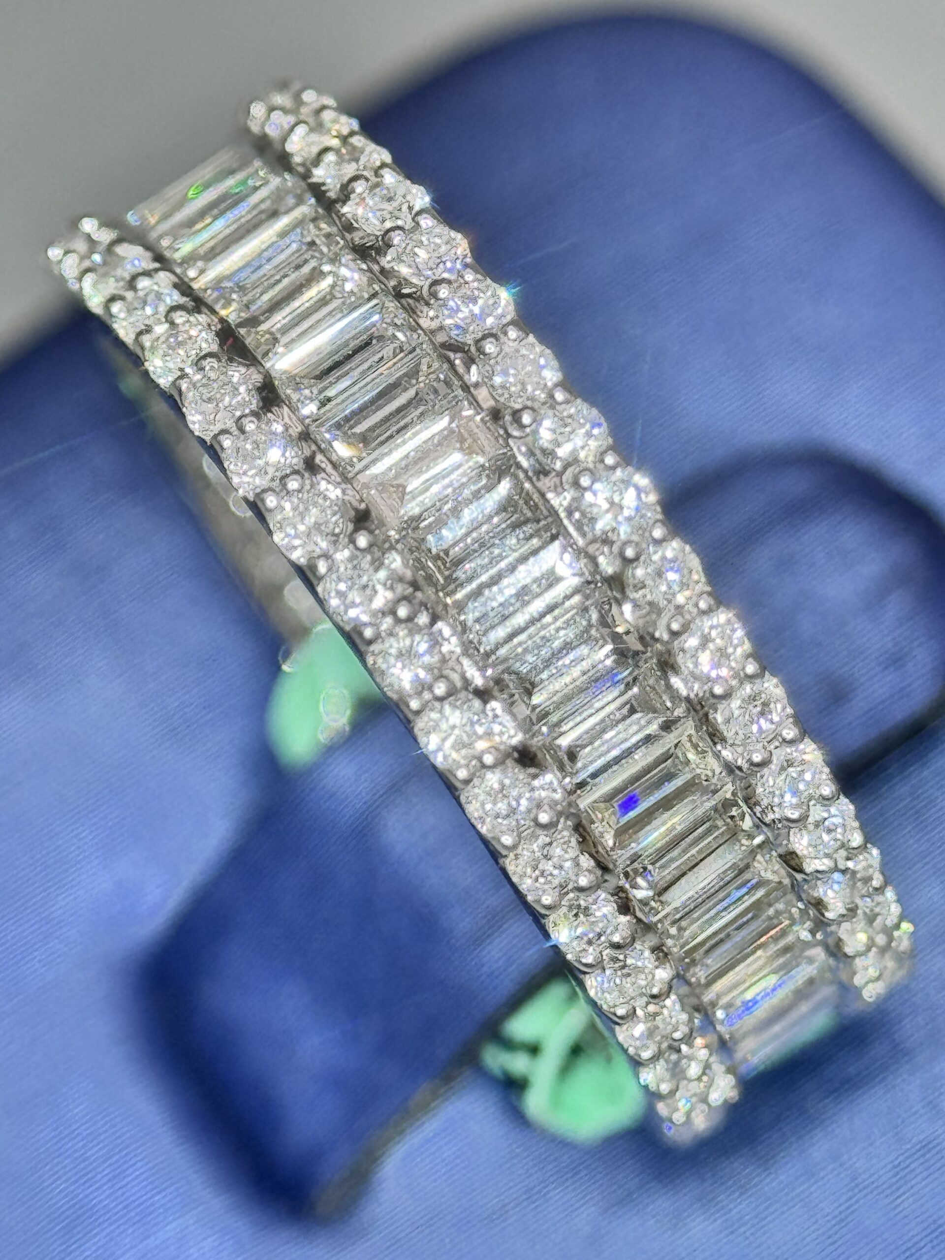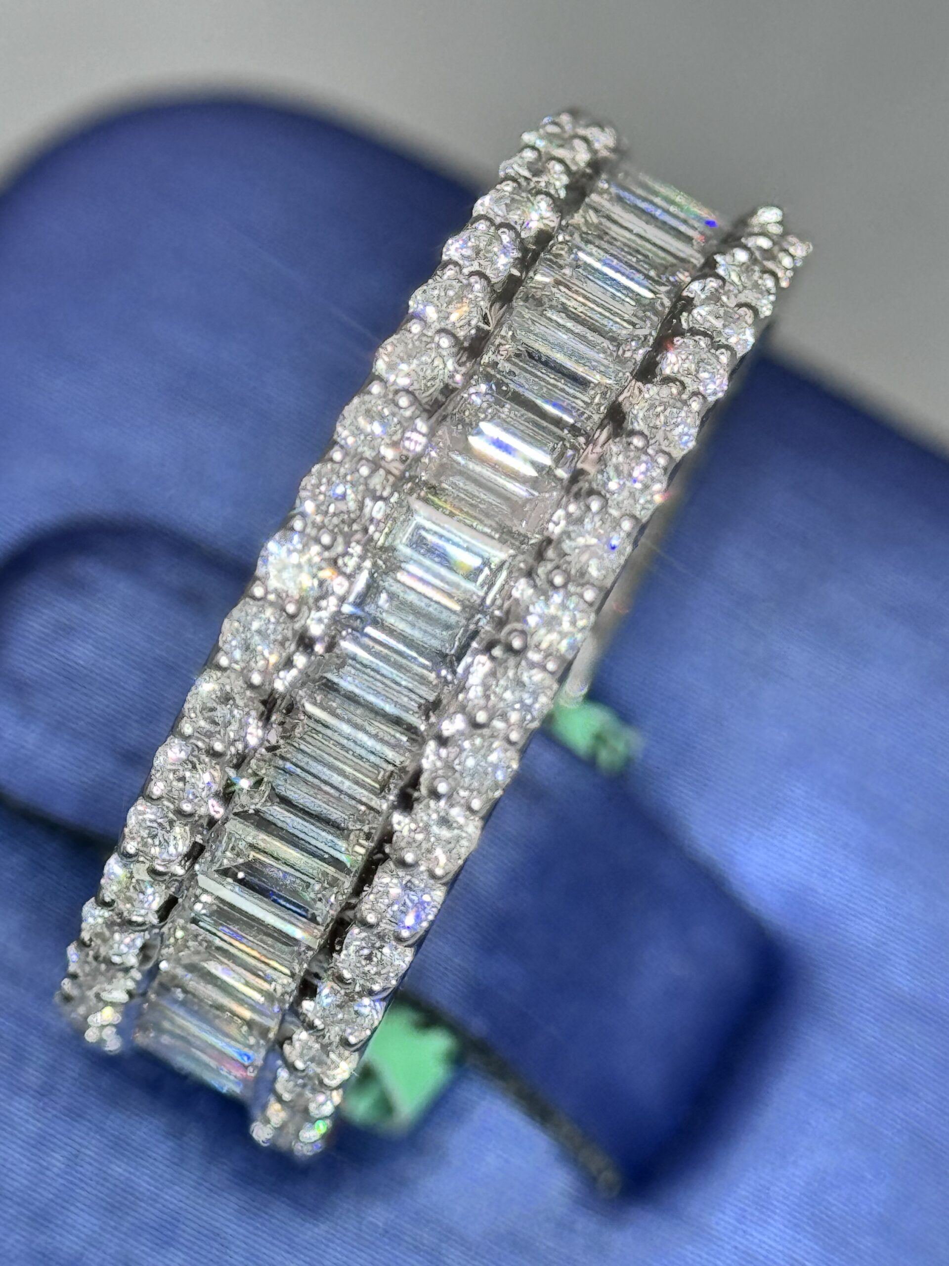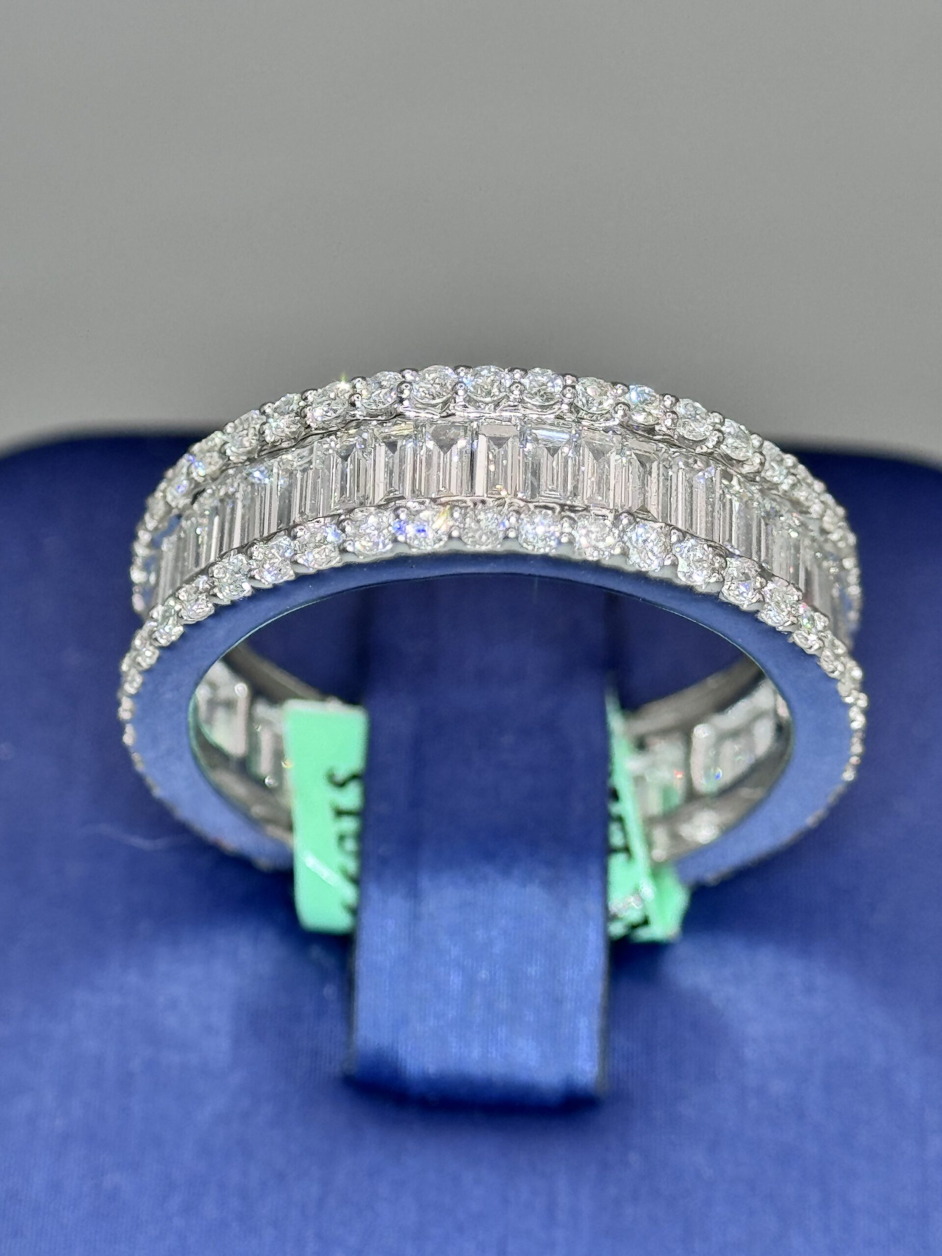 14KT W/Gold 3.35CT LabGrown Baguette Diamond Mens Band With RoundCut Diamonds On The Side VS E-F Color Size 10 Sizing Also Available Upon Request Certified Piece 7MM Width