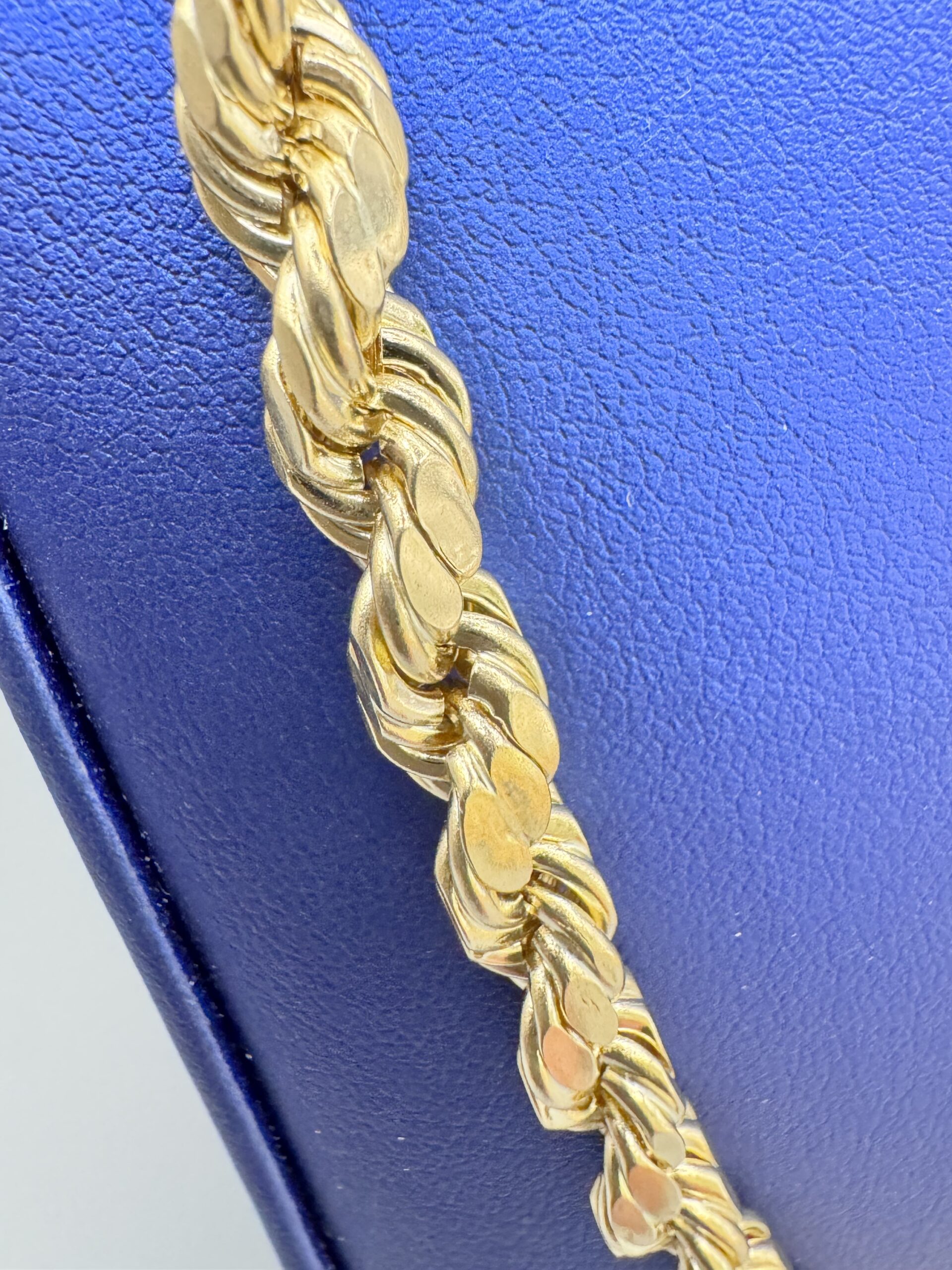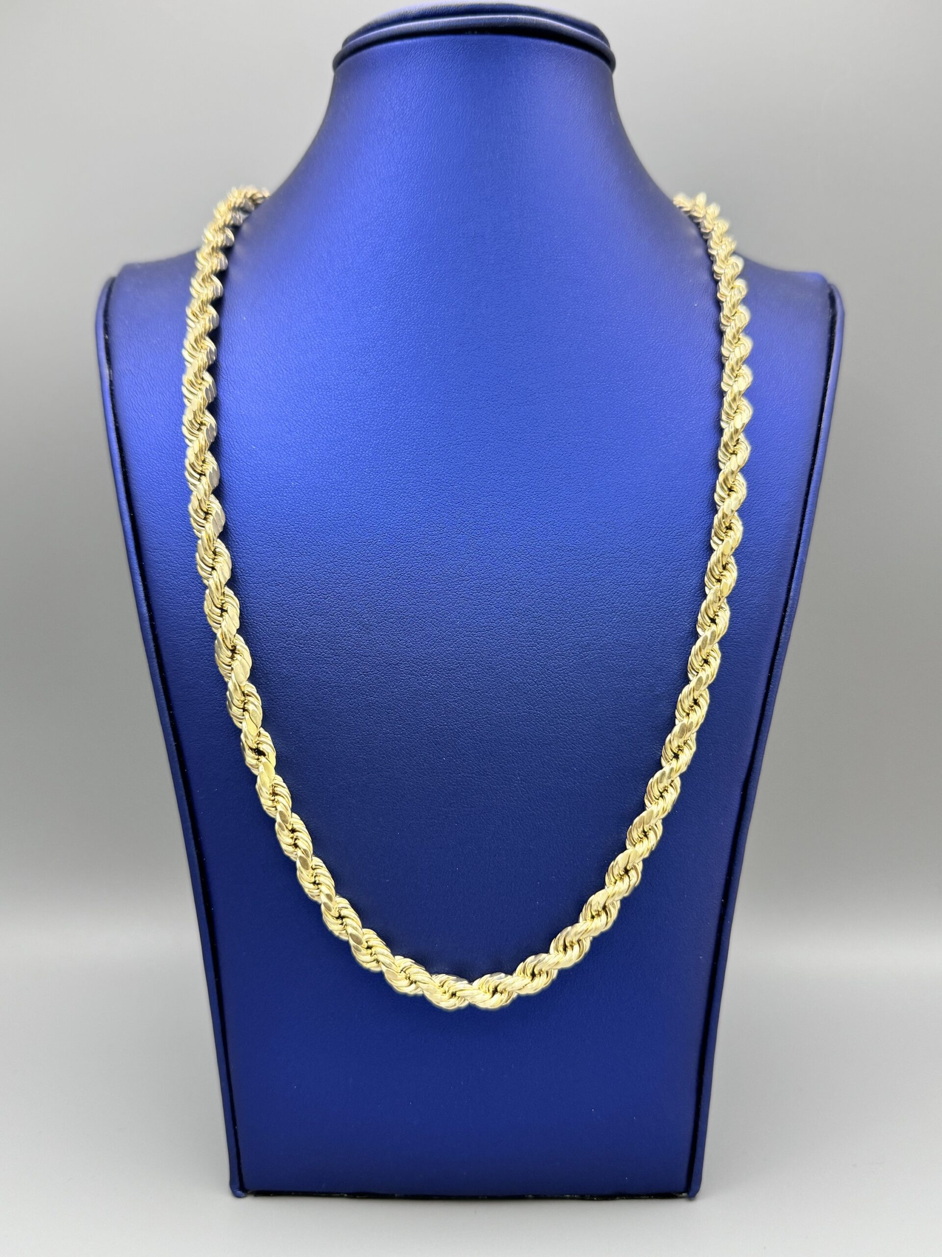 10Kt Gold Semi Solid DiaCut Rope Necklace 24" 7MM
