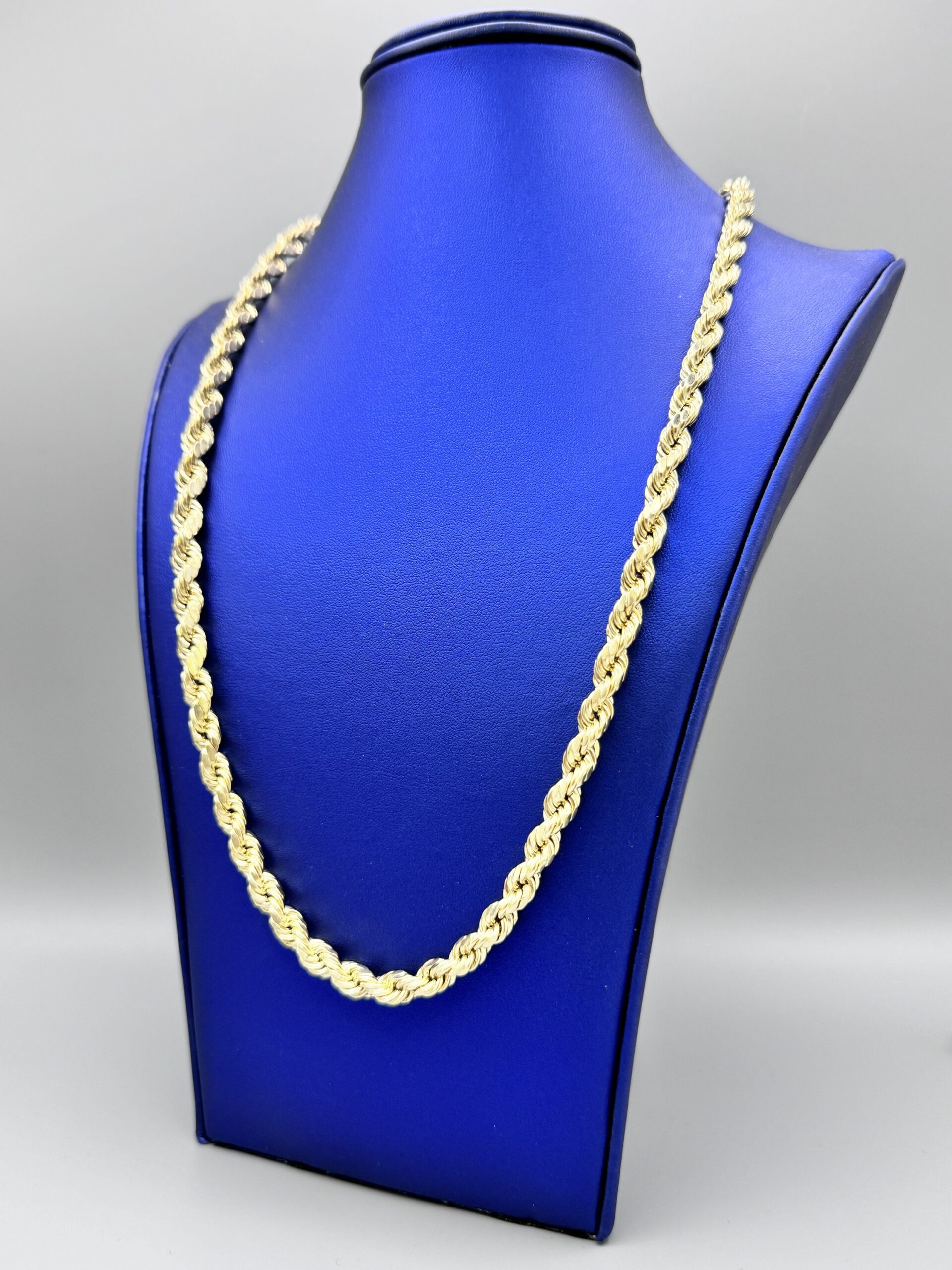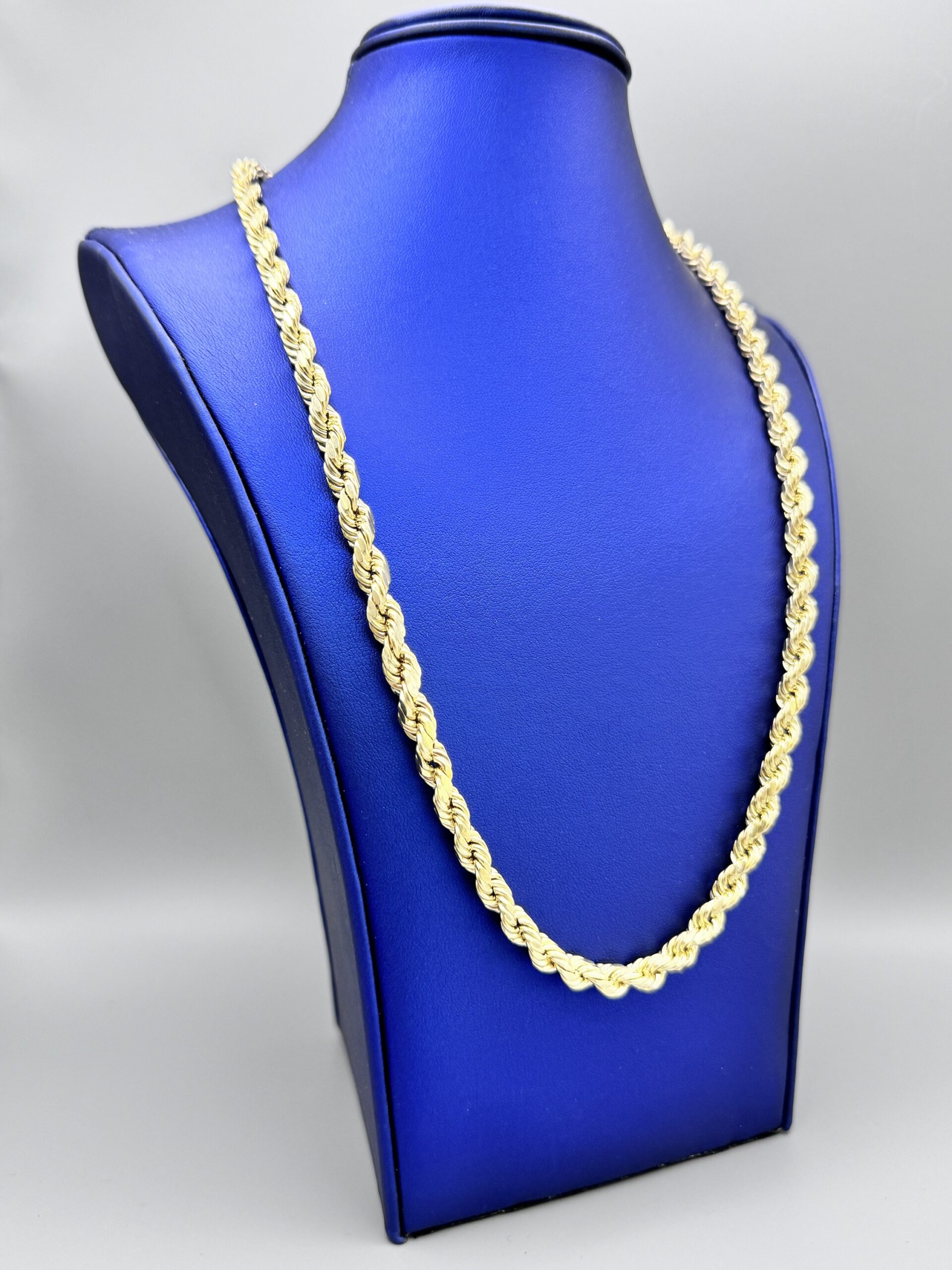 10Kt Gold Semi Solid DiaCut Rope Necklace 24” 5MM