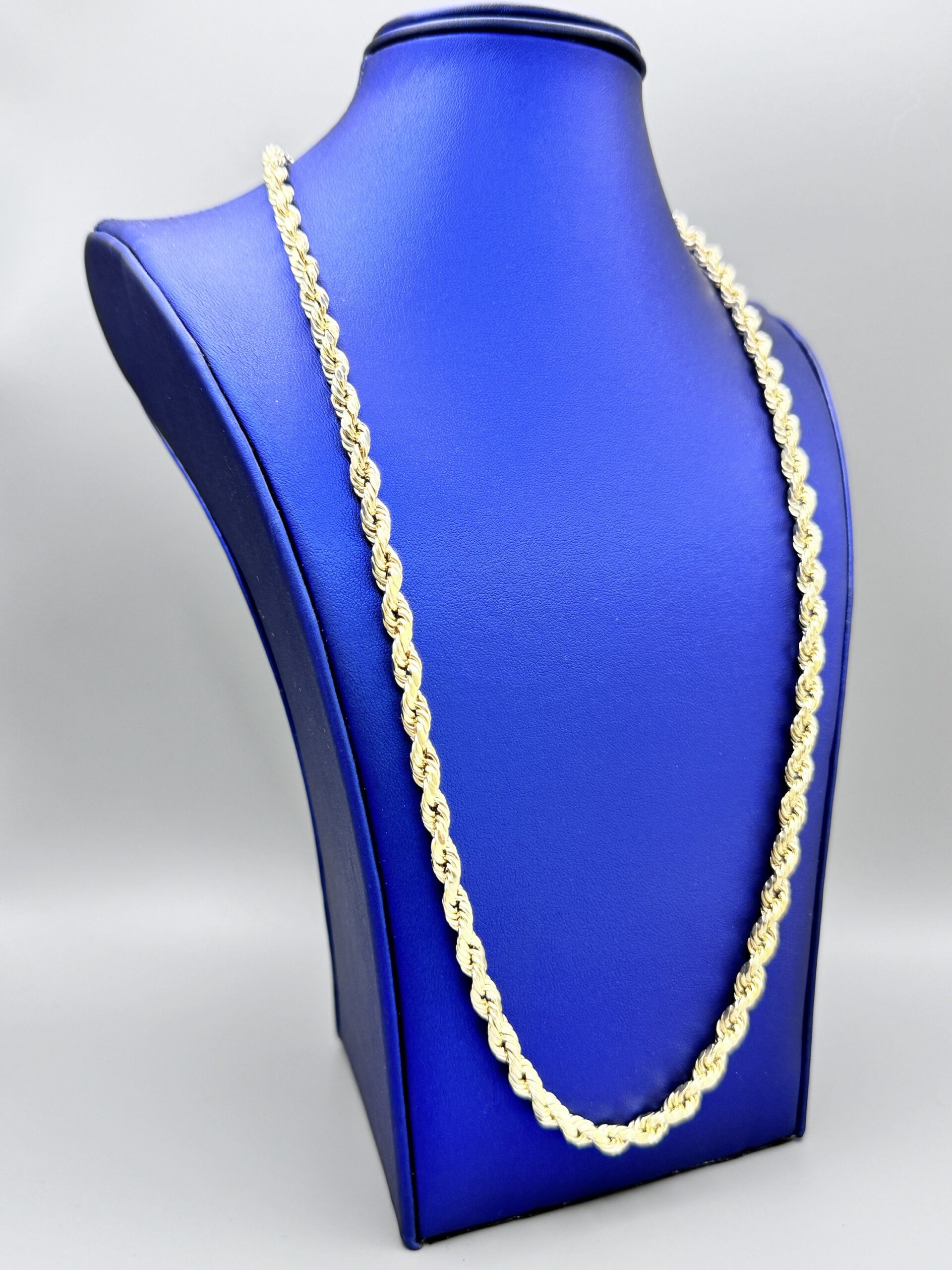 10Kt Gold Semi Solid DiaCut Rope Necklace 24” 5MM