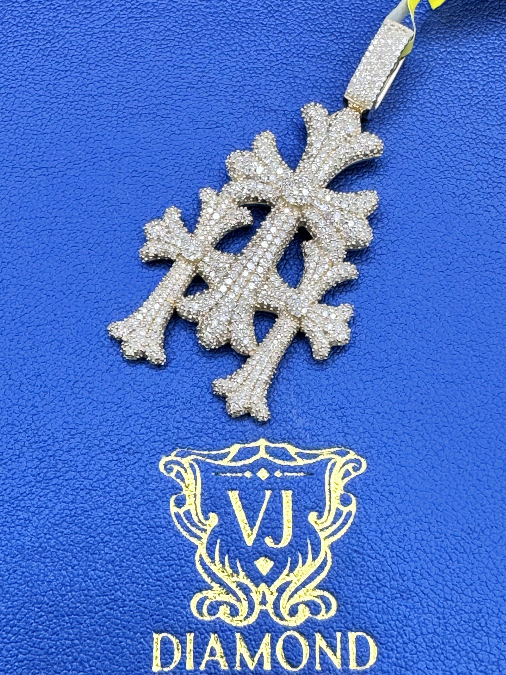 10KT Gold 2.25CT Diamond Multis Cross Pendant 2″ Tall by 1.10″ Wide Approx Gold Weight 11.6 Gram