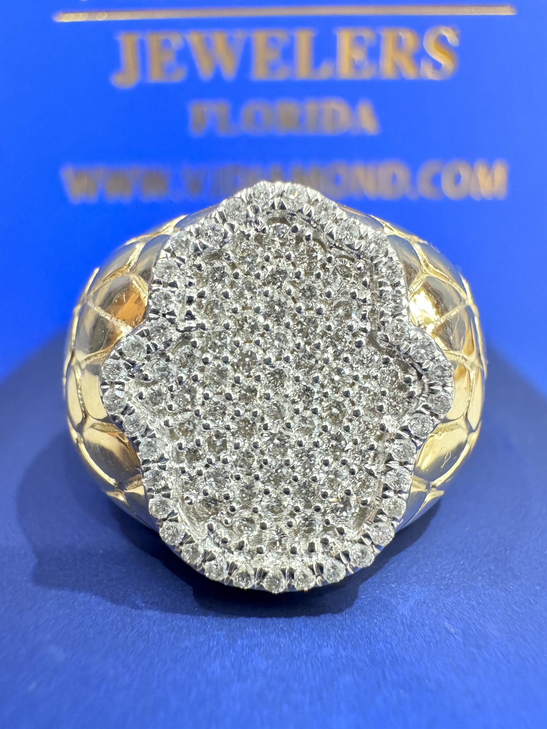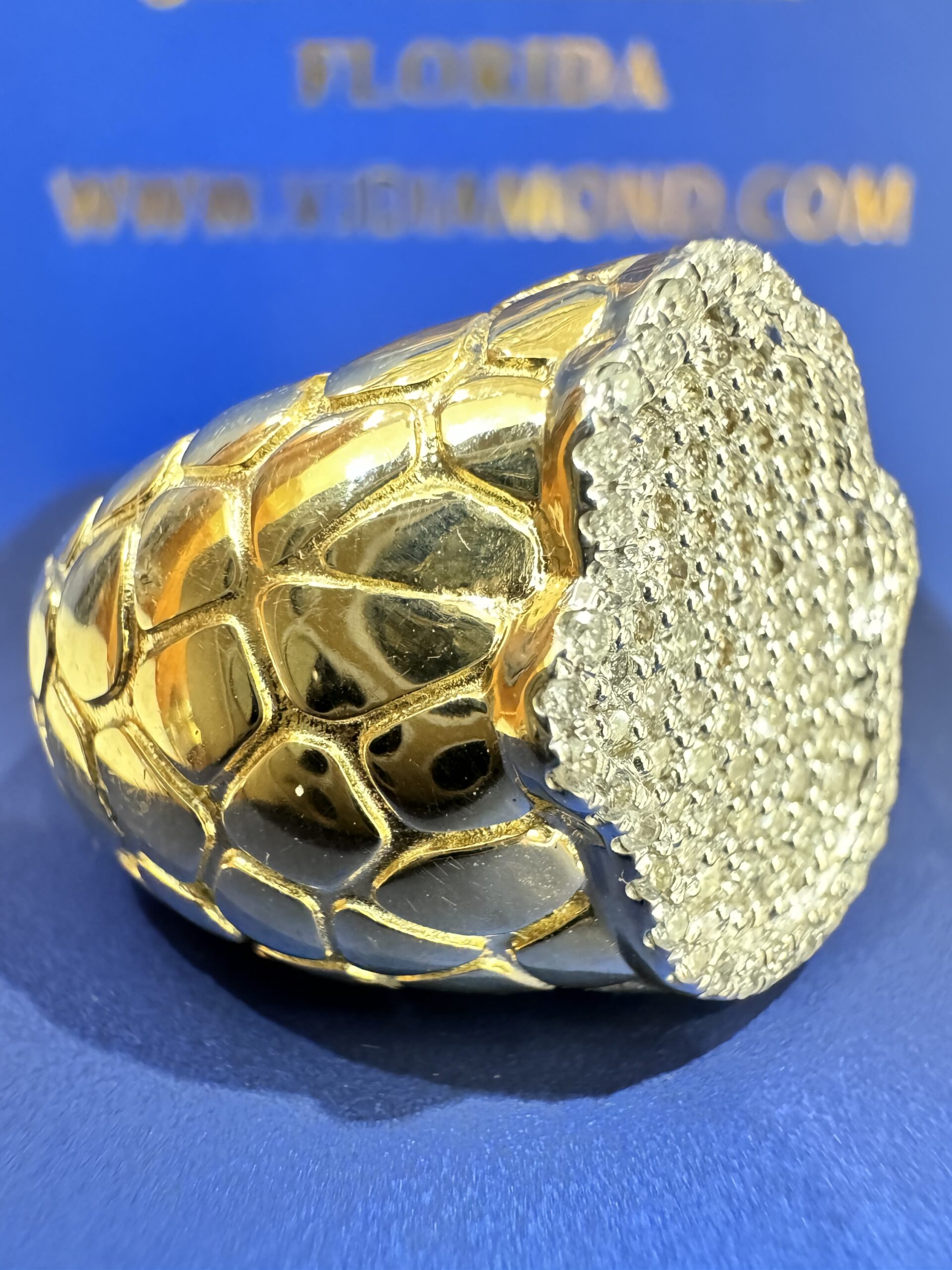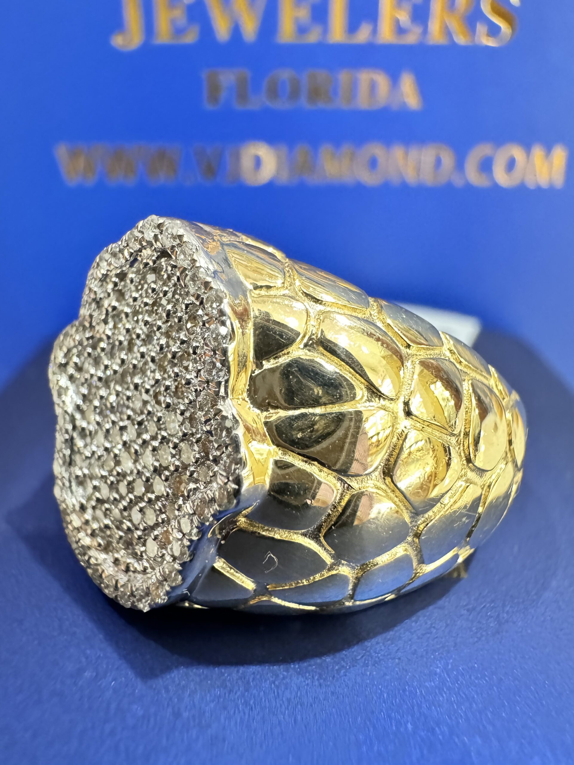 10KT Gold 0.75CT Diamond Hamza Ring With Nugget Design On the Side Approx Gold Weight 9.9 Gram Size 10 Sizing Available