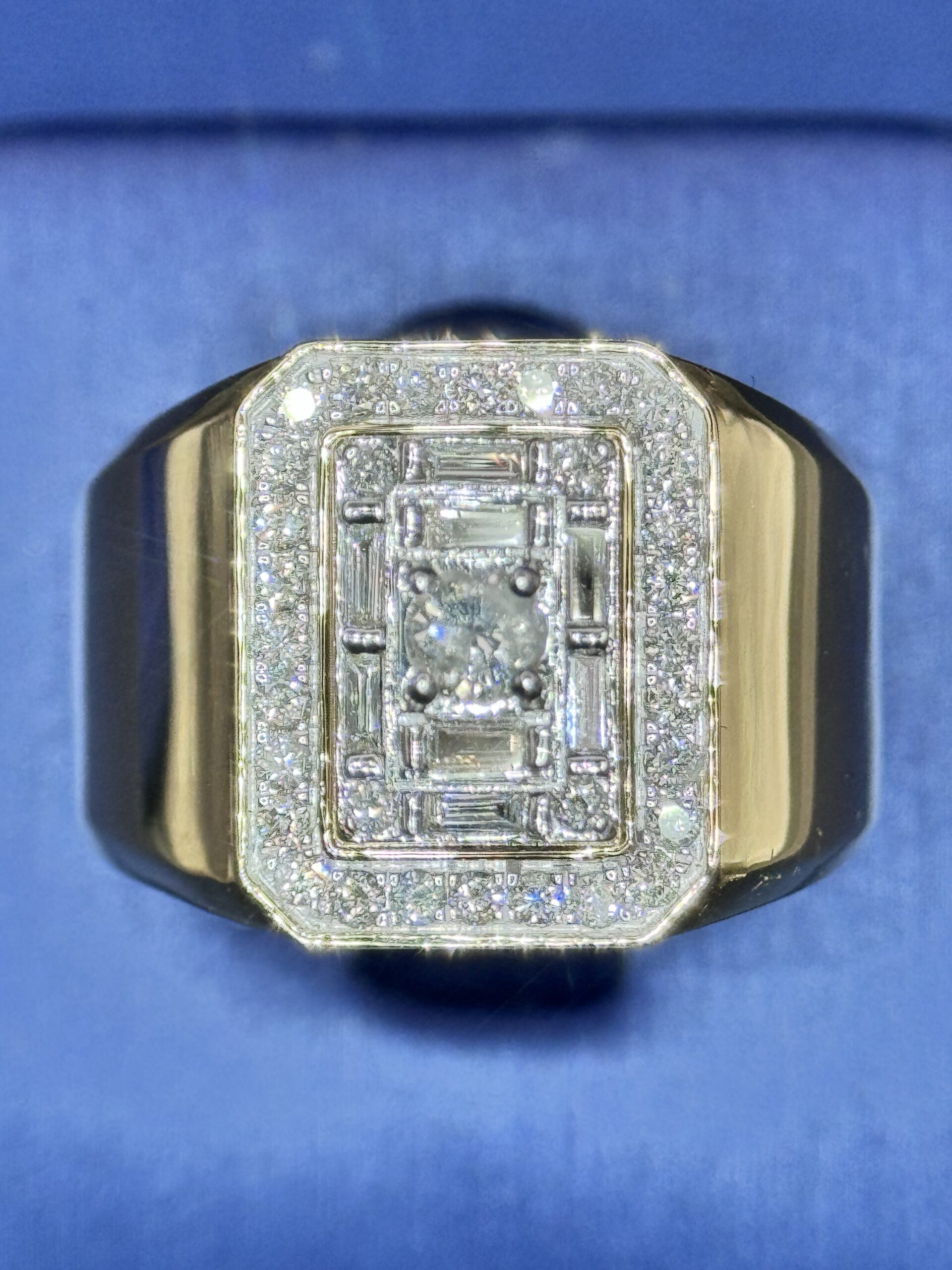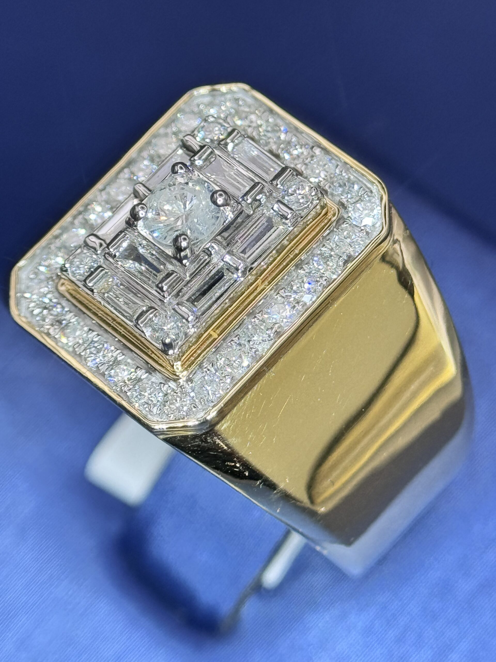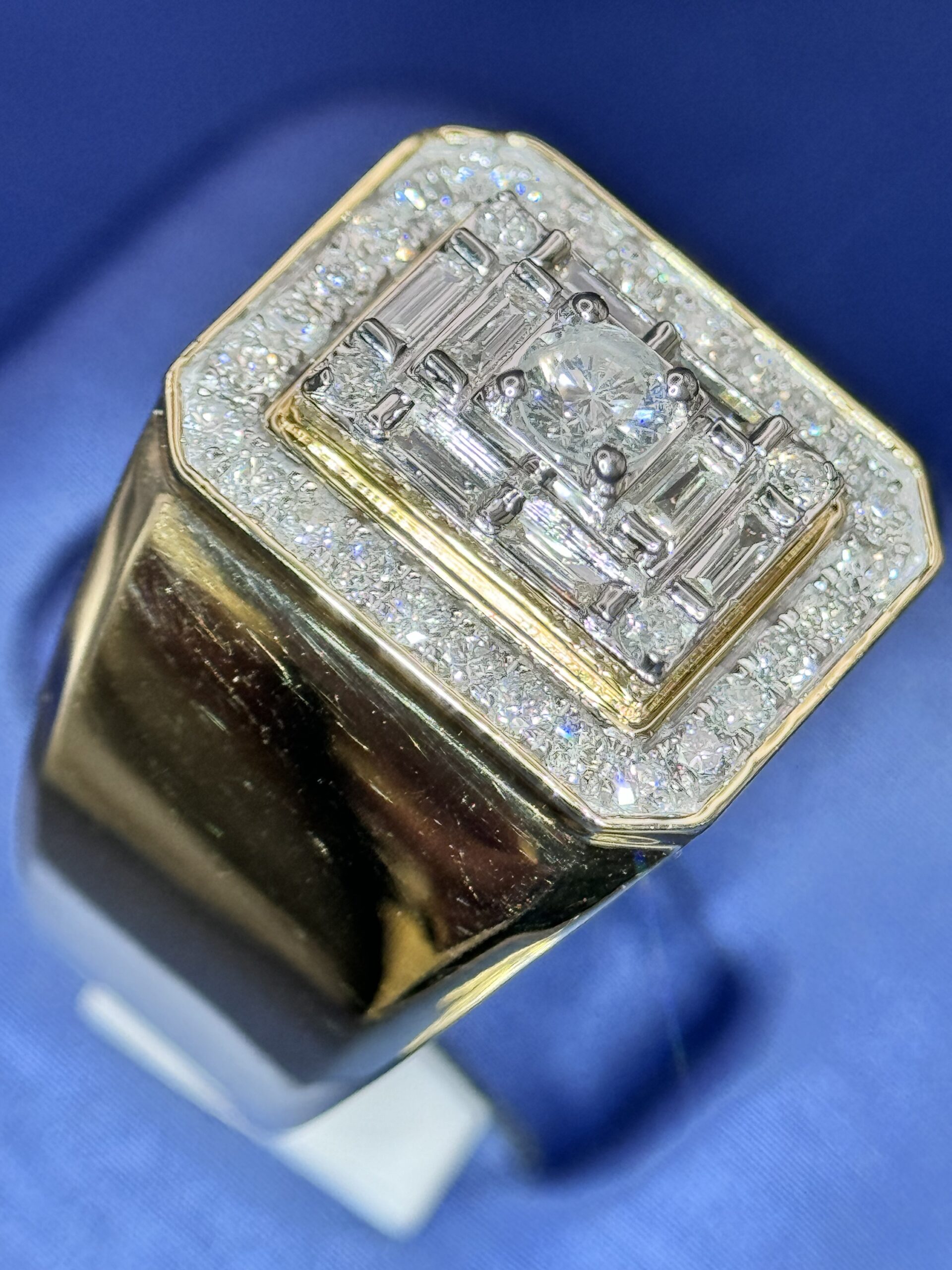 14KT Gold 0.88CT Diamond Mens Ring With RoundCut N Baguette Diamonds Size 10 Approx Gold Weight 6.2 Gram 17MM Top Head Width Clean Luxury Look