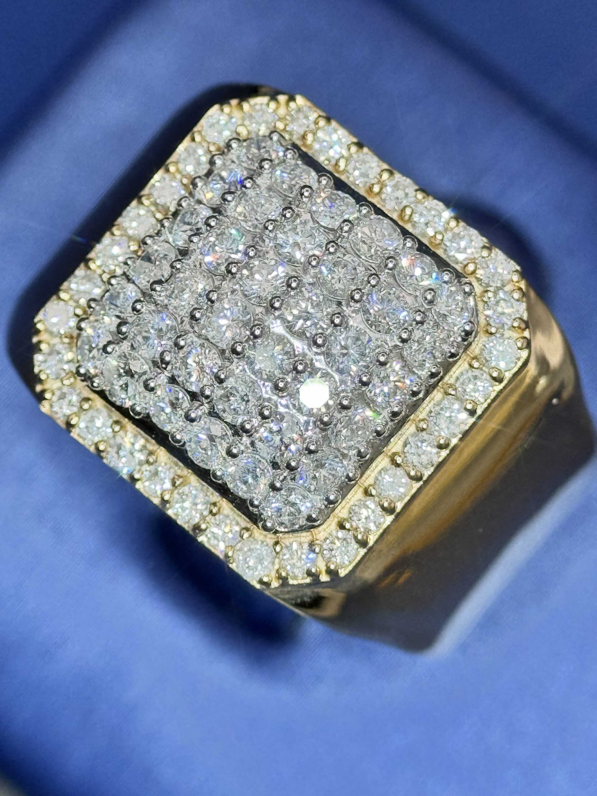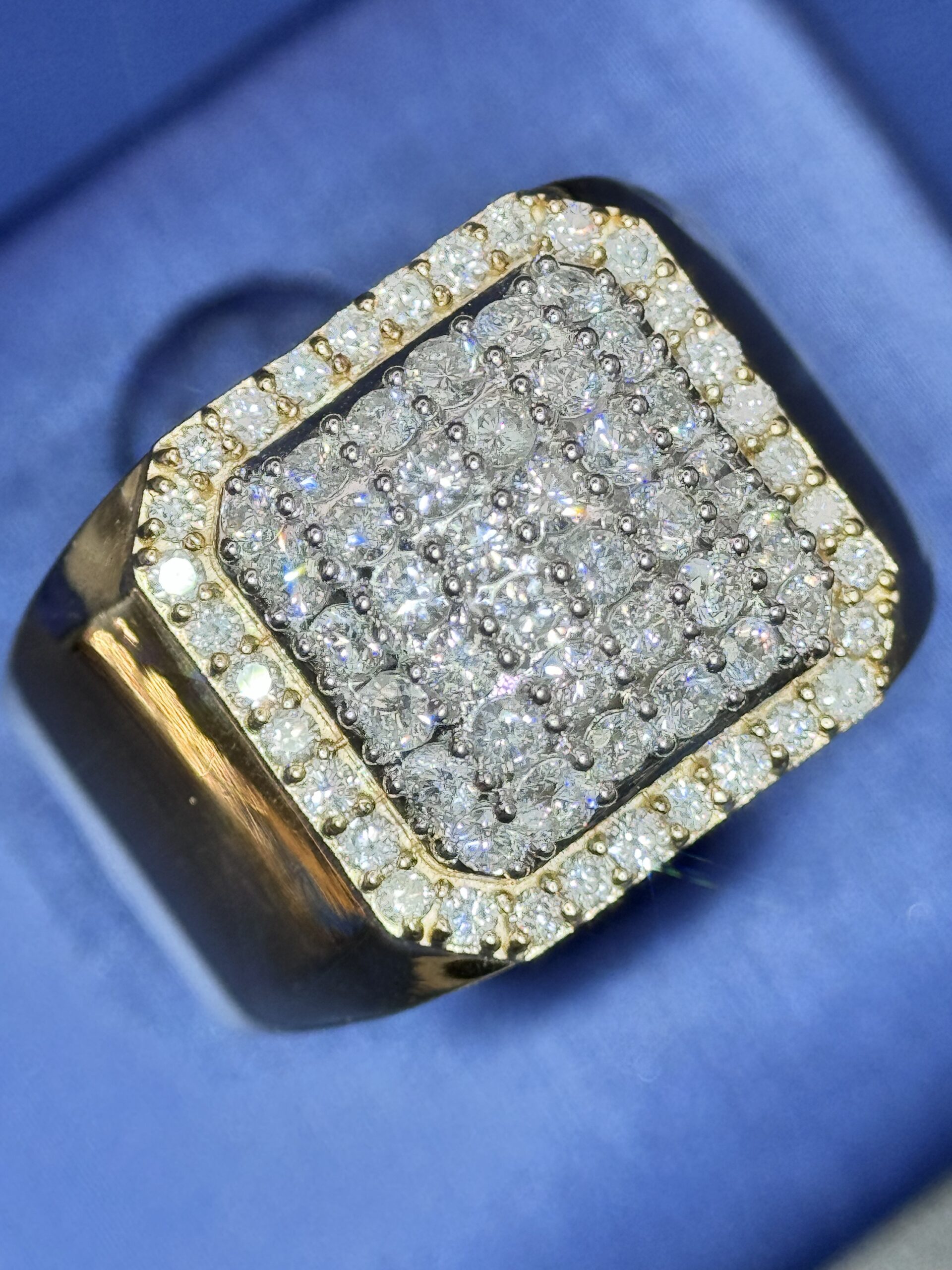14KT Gold 1.69CT Diamond Mens Ring With RoundCut Diamonds Size 10 Approx Gold Weight 5.6 Gram 17MM Top Head Width Clean Luxury Look