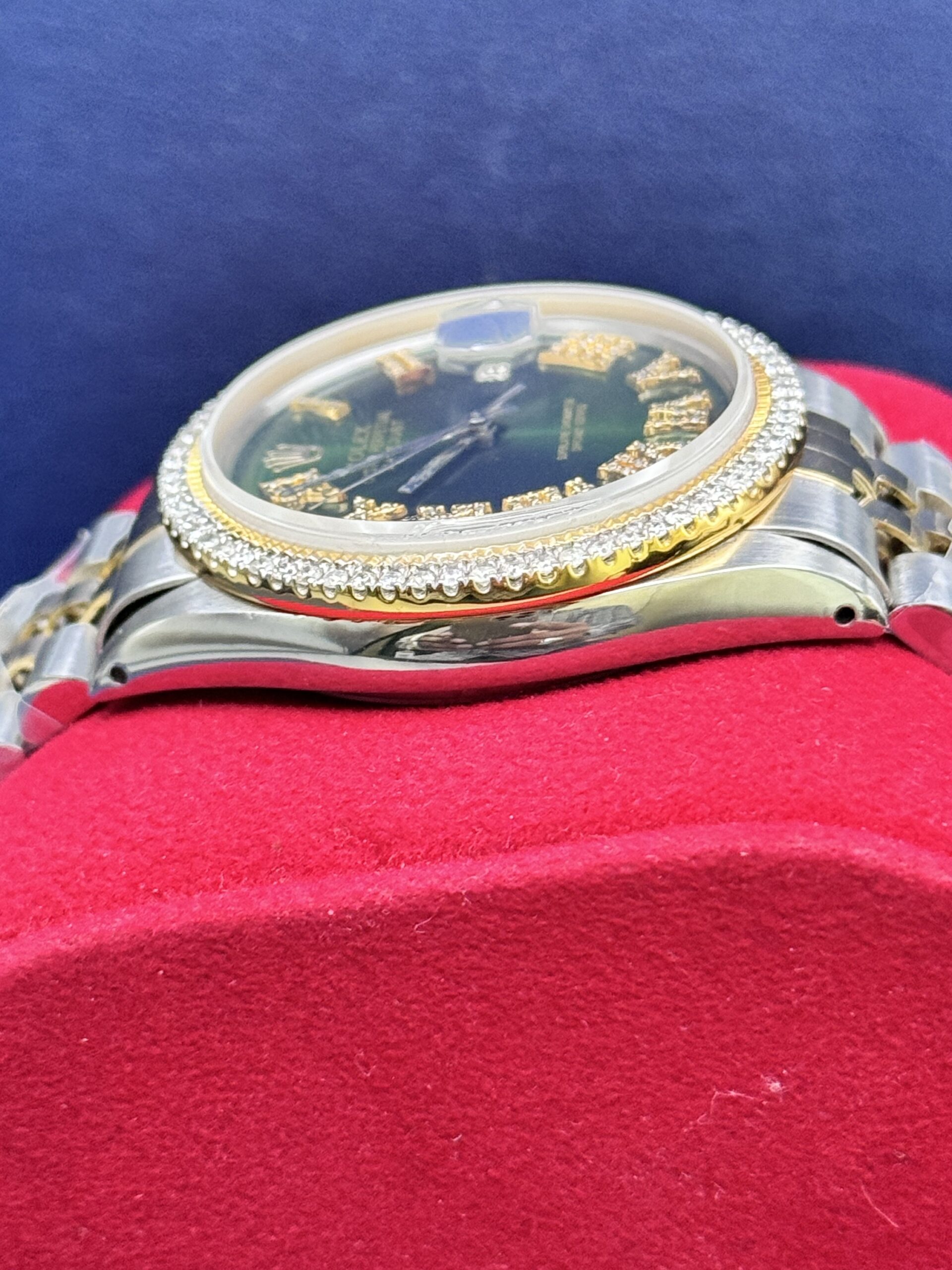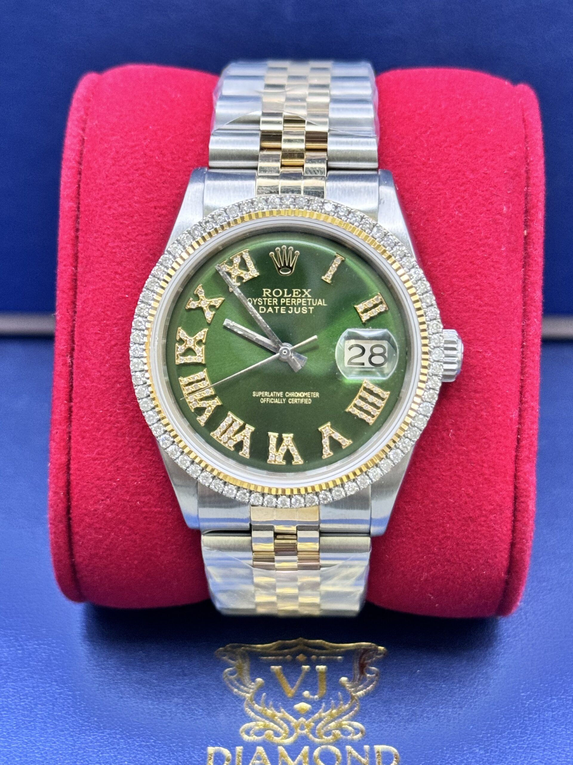 DateJust 36MM 2.00CT Diamond Bezel With Jubilee Band Roman Numeral Green Face Ref No 1601 year 1969 Well Serviced Factory Movement After Market Band Dial And Face