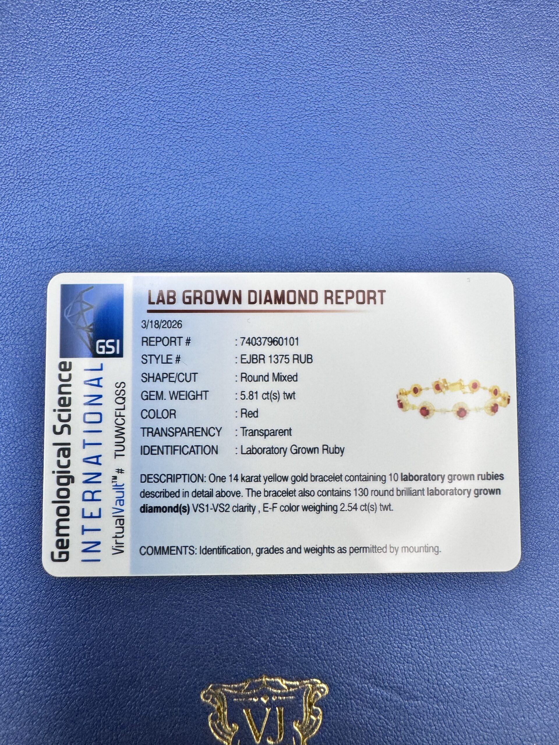 14KT Gold 5.33CT LabGrow Diamond Ruby Bracelet