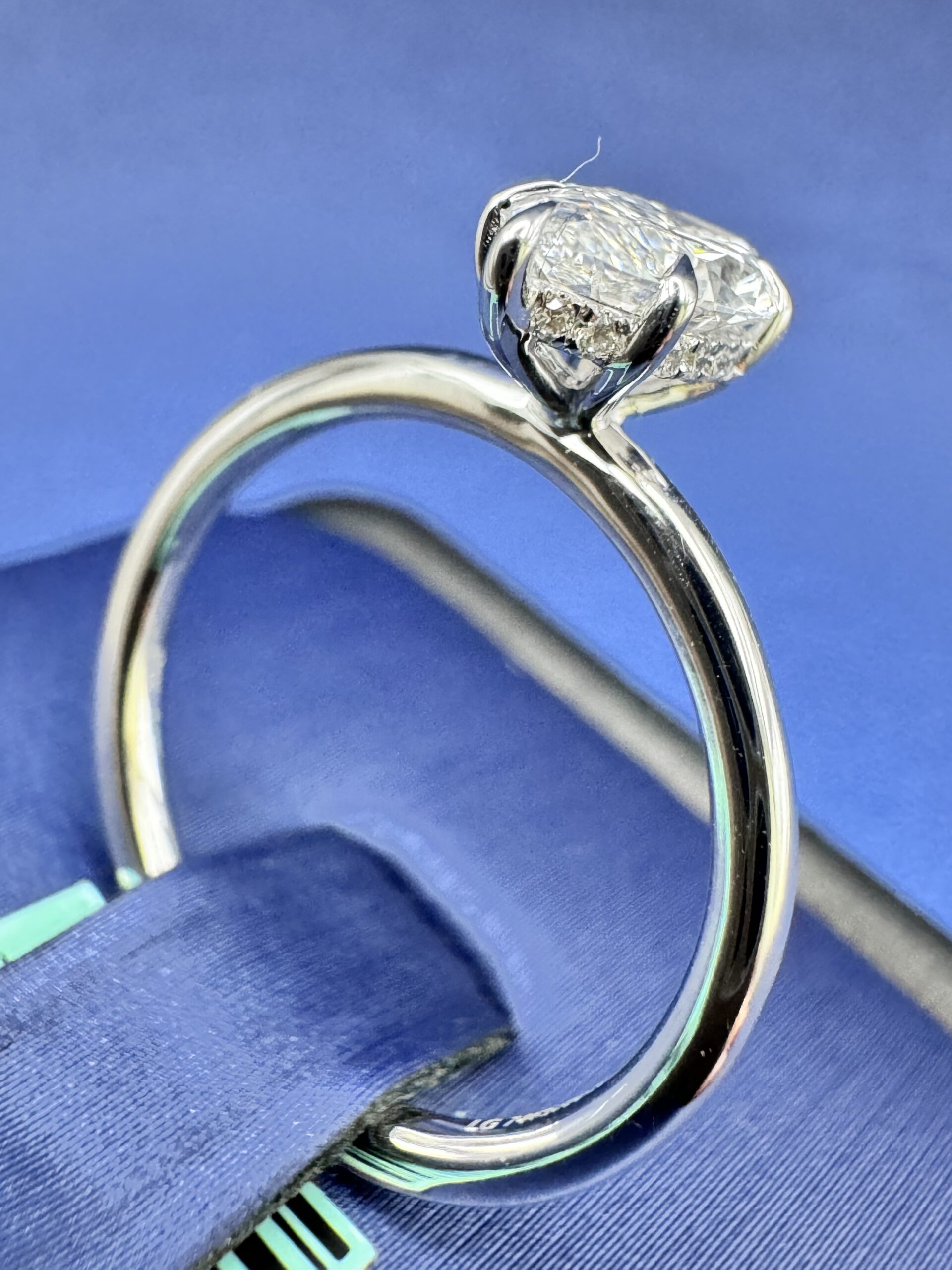 14KT W/Gold 1.12CT LabGrown Marquee Diamond Ring Center Solitaire 1.06CT Size 7 Smooth Classic Mounting 4 Prongs Hidden Halo Set Approx Gold Weight 2.7 Gram VS1 Clarity E Color Sizing Available Comes With Certification 2MM Band Width